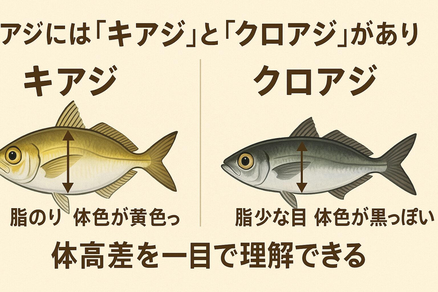 この記事では、釣り人にも料理好きにも役立つ「キアジとクロアジの違い」を、体高と脂のりを軸に徹底解説します。