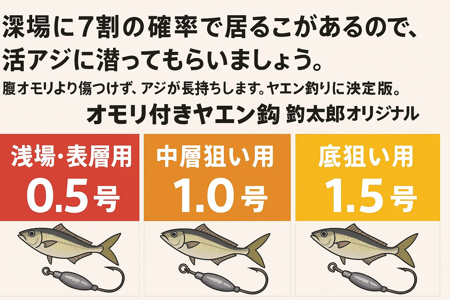オモリ付きヤエン鈎は、「タナを探る」「アジを長持ちさせる」「違和感を減らす」――