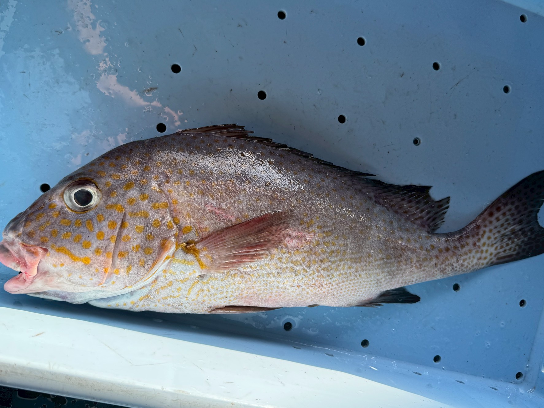 - 成魚(写真の魚): 成長するにつれ縦縞は消え、銀灰色の体に黄褐色の斑点がびっしりと現れます。この斑点が「胡椒を振ったように見える」ことから、「コショウダイ(胡椒鯛)」の仲間であることも示しています。