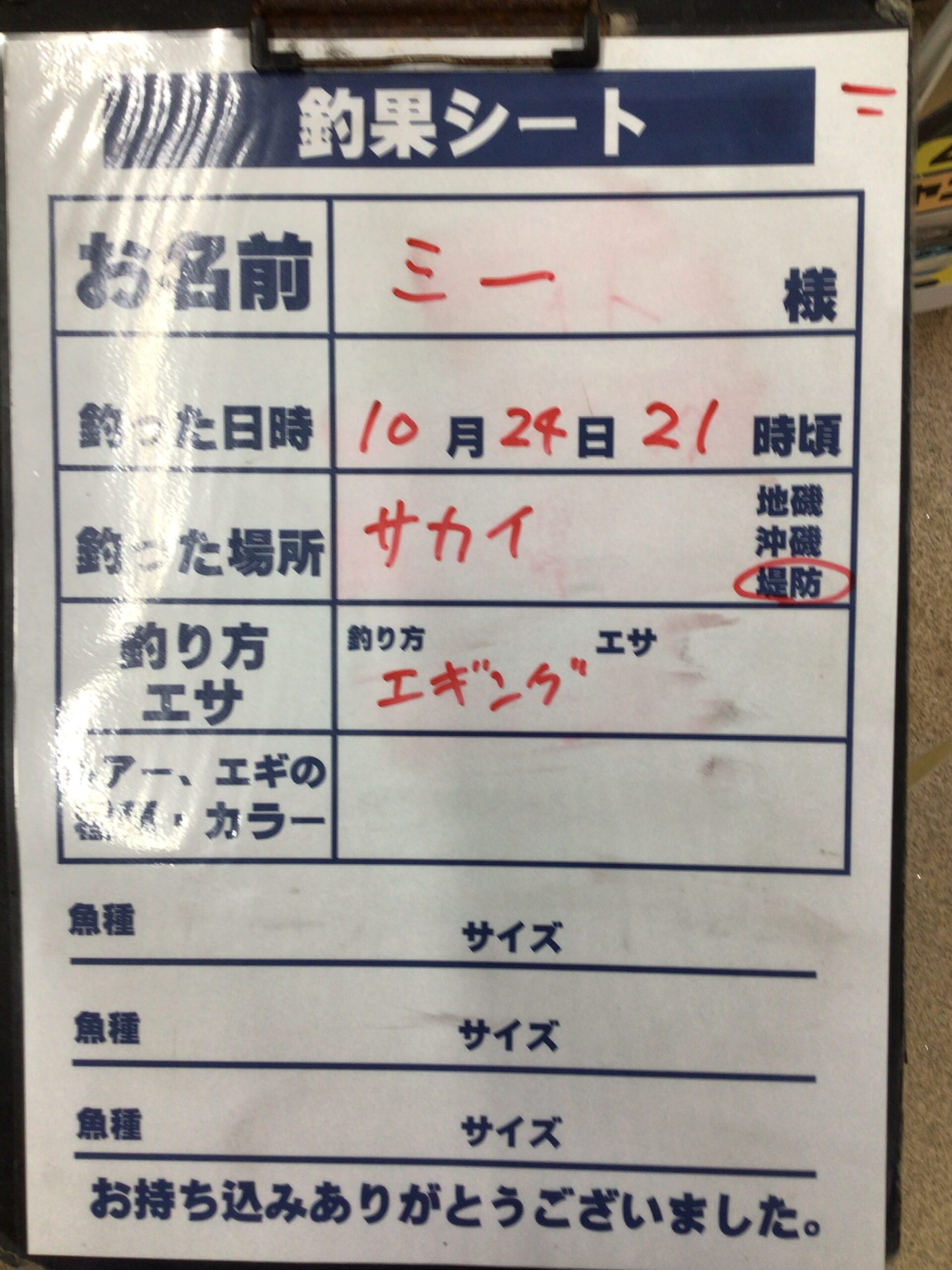 森の鼻 ヤエン釣りにてアオリイカの持込釣果。