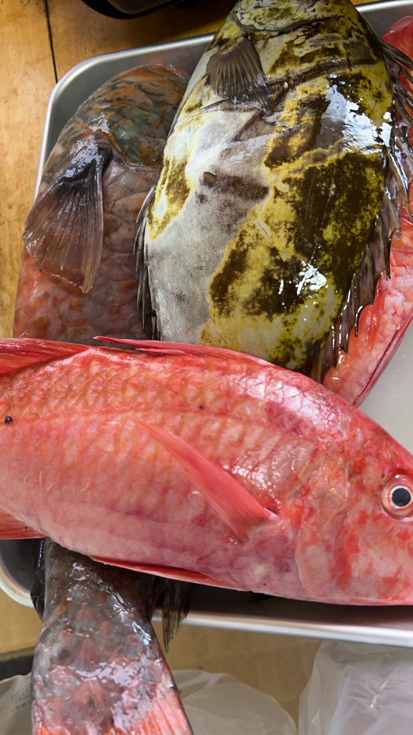 イガミ オス 1匹、アイゴ 40cm 1匹、謎の赤い 3匹
