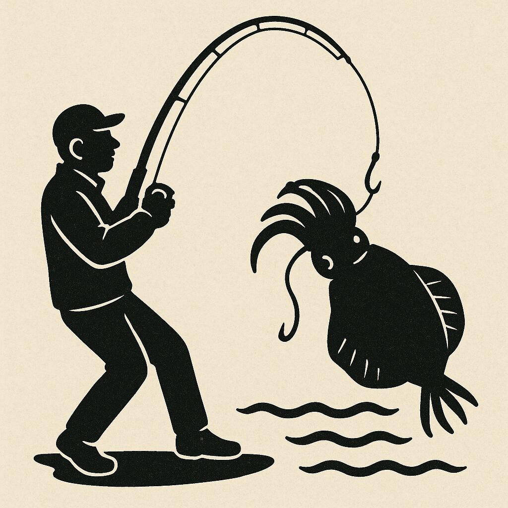 イカが動いた瞬間(抵抗を感じた瞬間)にゆっくりロッドを立てて掛ける。