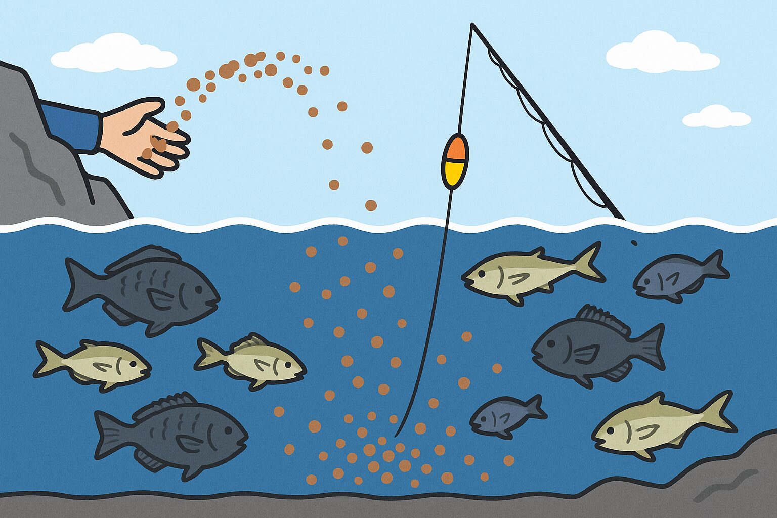 この記事では、なぜ「撒きすぎ」が釣果を落とすのか、その理由と理想的な撒き方を詳しく解説します。