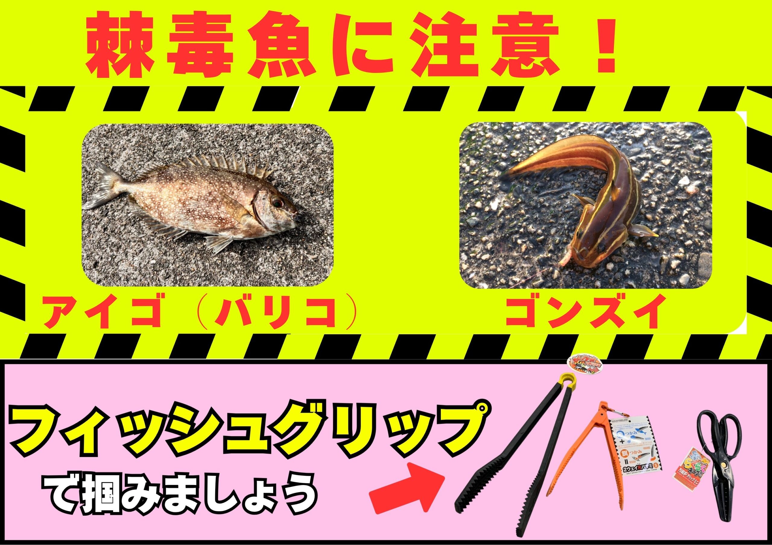 フィッシュグリップ等で掴みましょう。