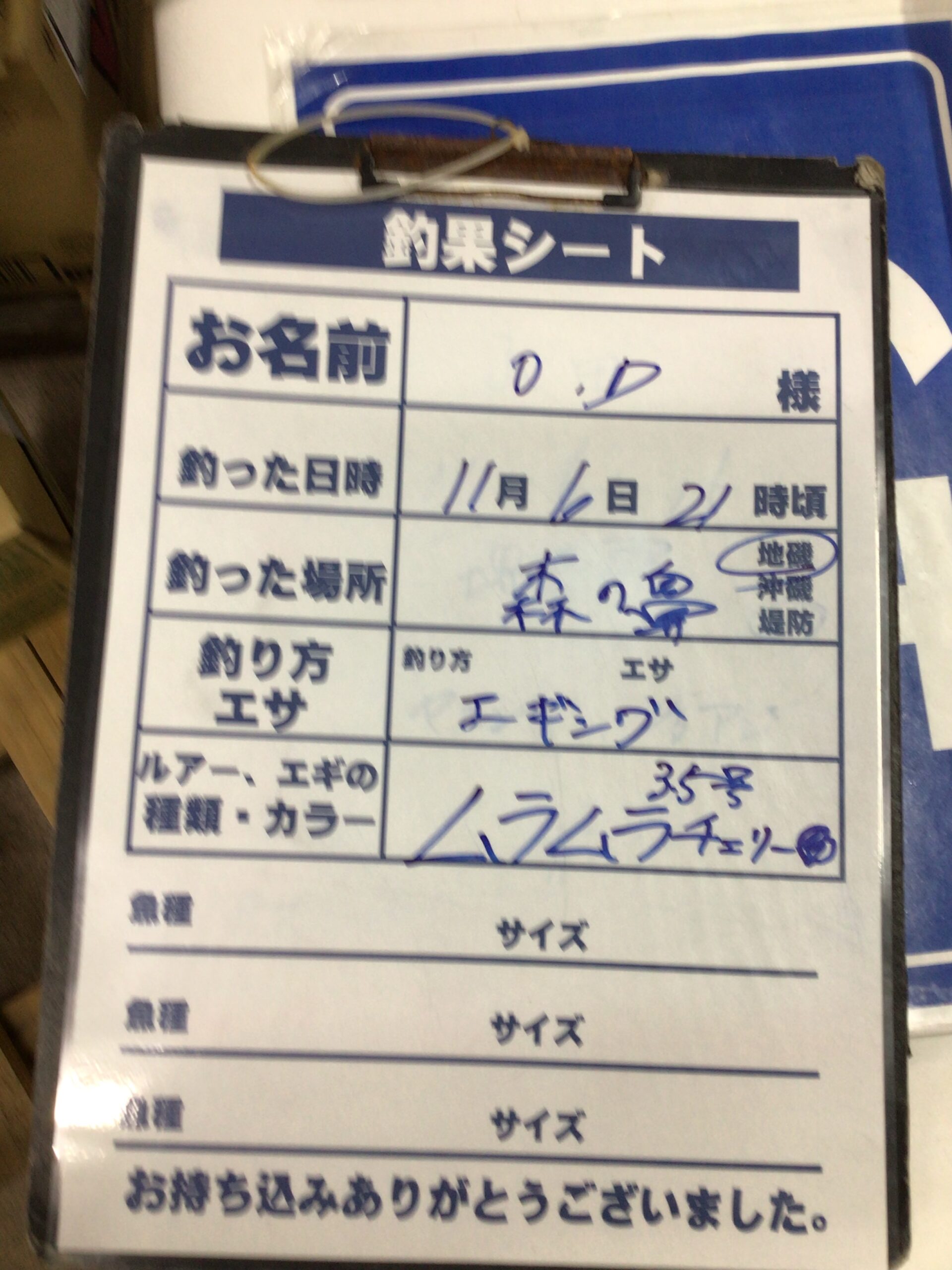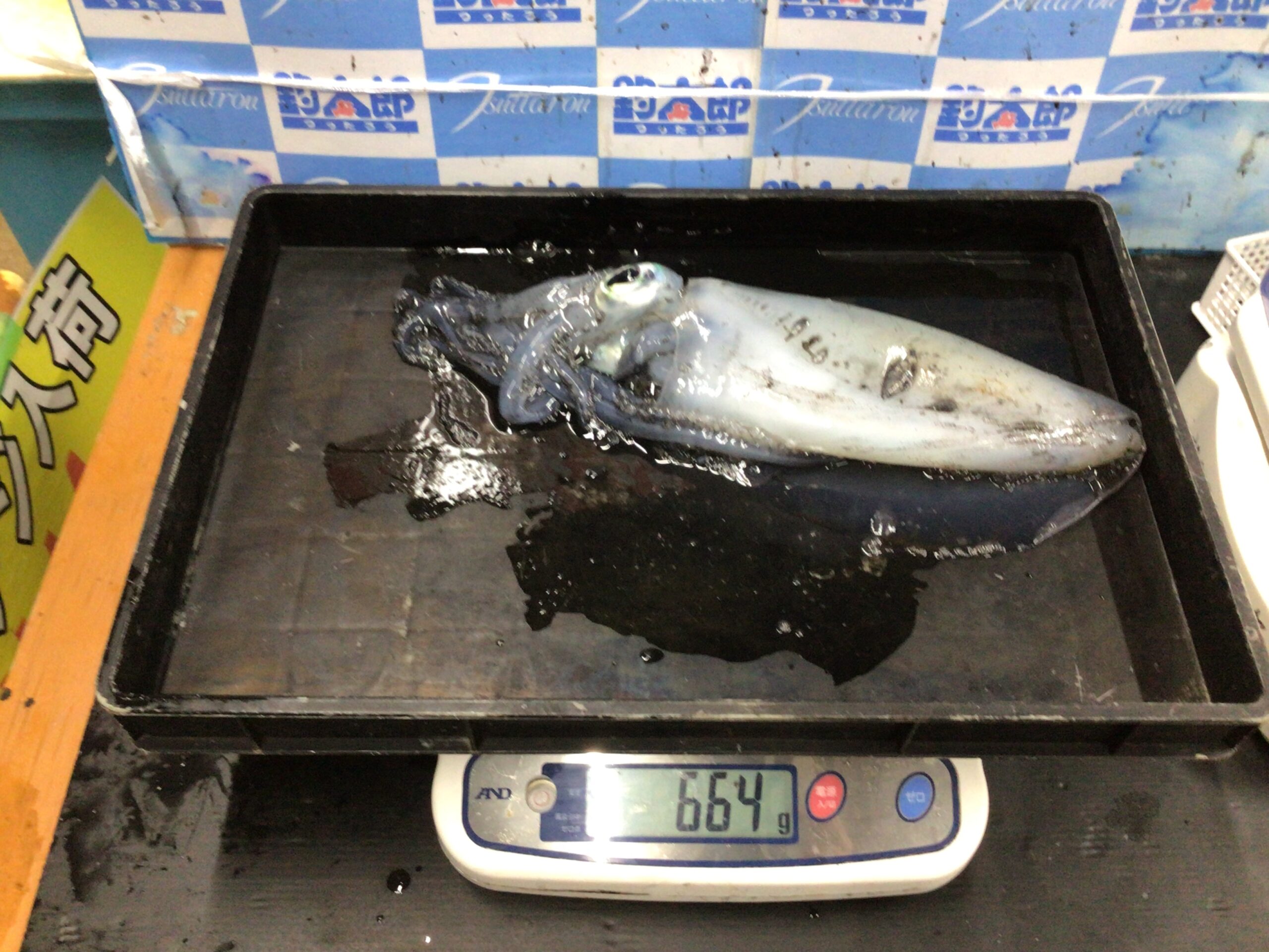 11/6 (木)森の鼻地磯にてアオリイカ664g エギ王ムラチェ3.5にて