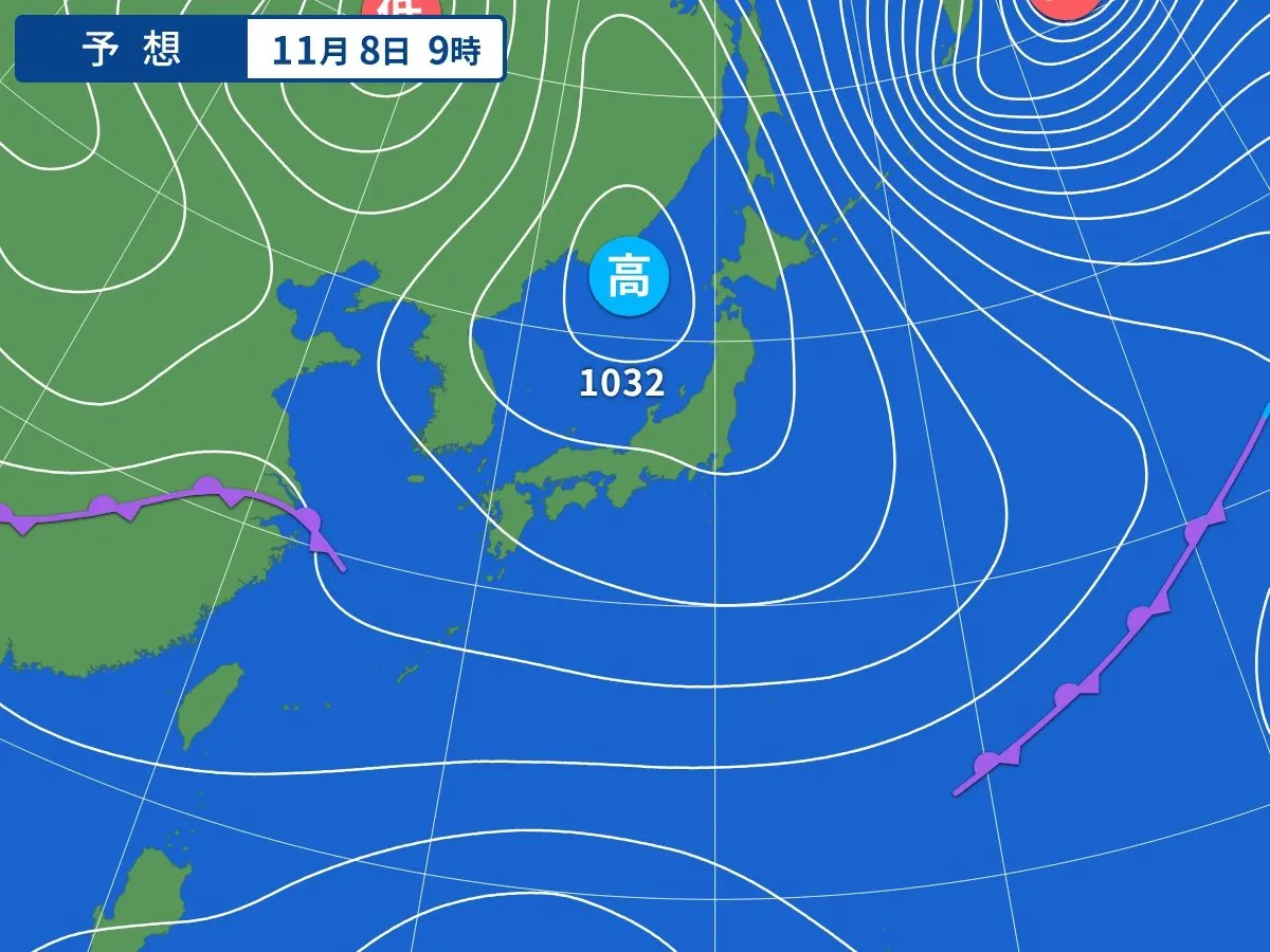 三角形みたいな形の高気圧は、等圧線の外縁を東、北東からの風が吹くので、