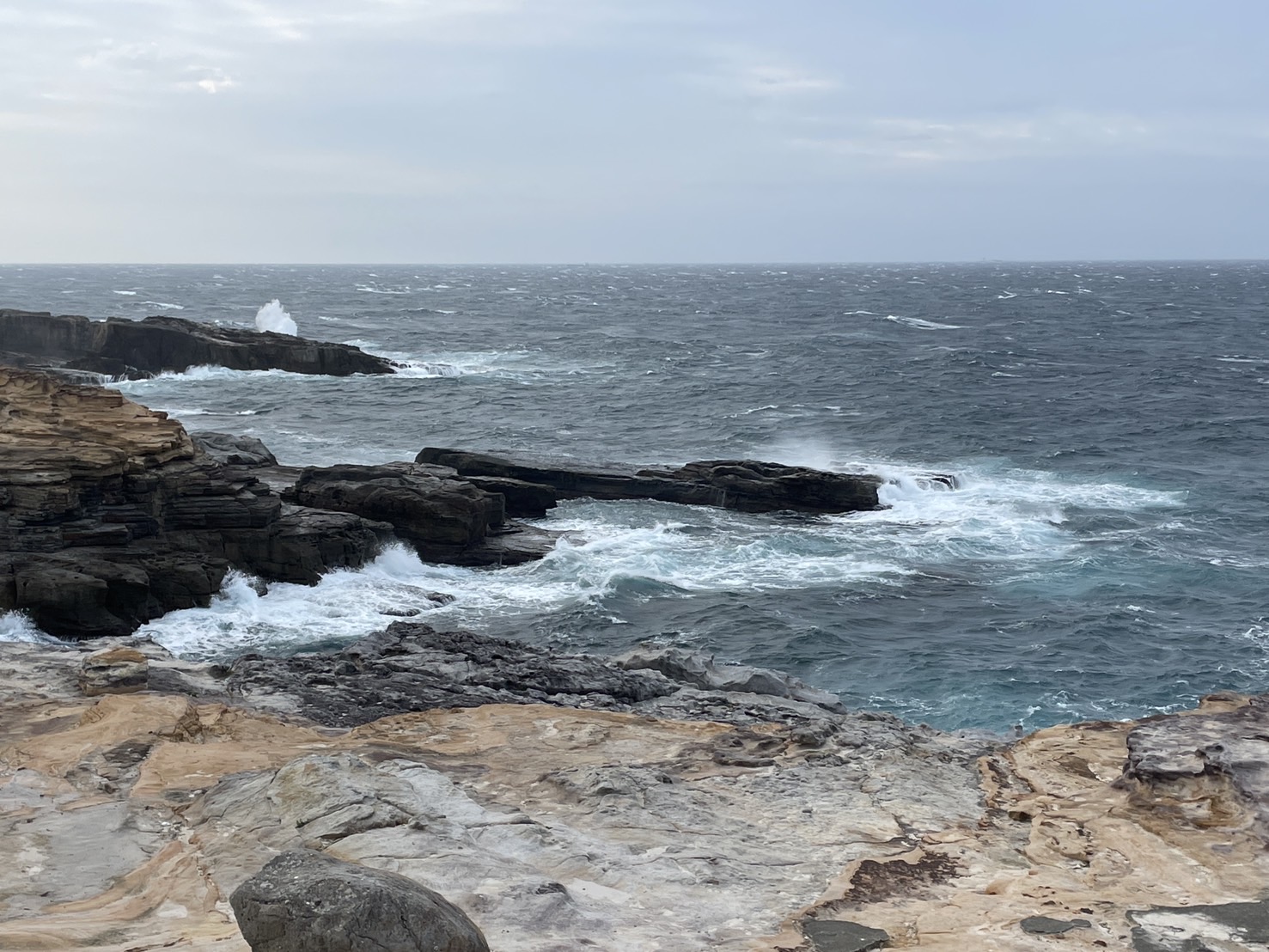 白浜千畳敷は、立っていられないくらい風が強いです。