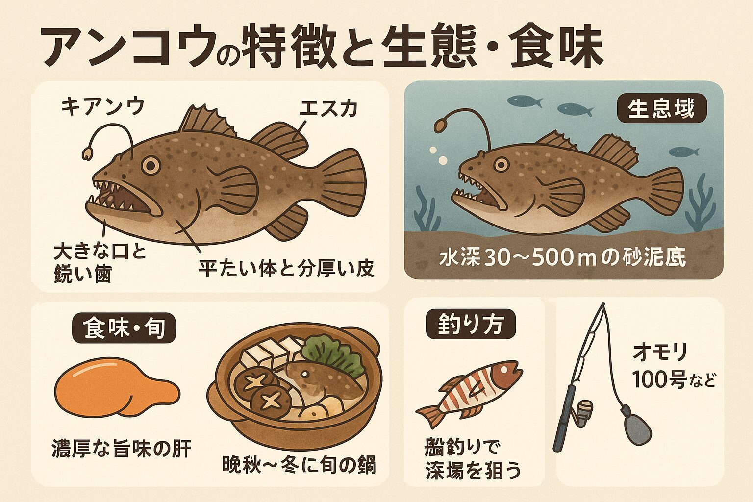「アンコウの特徴・生態・食味」を一気に整理して解説します。