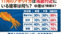 11月のアオリイカは日中は海底付近に70%以上滞在、朝夕まずめは中層~表層に40〜50%回遊、夜間は中層中心に活発化します。
