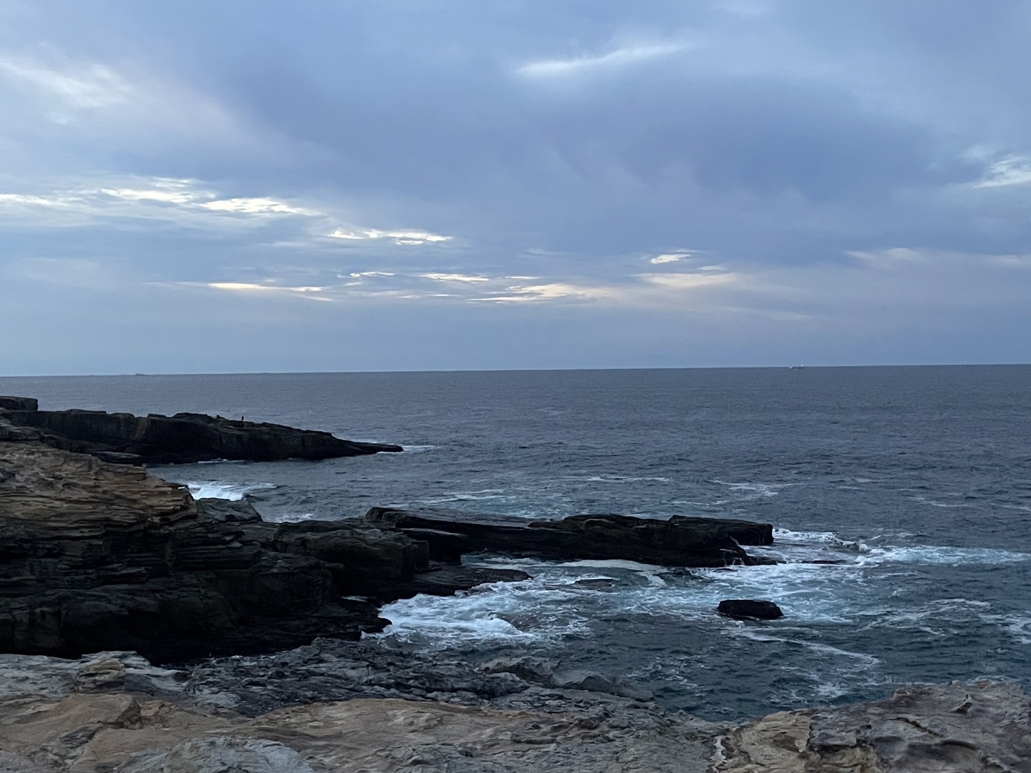 今朝は風もそれほど吹いていません。少しウネリがあるようですが 、何人か釣り人が磯にいます