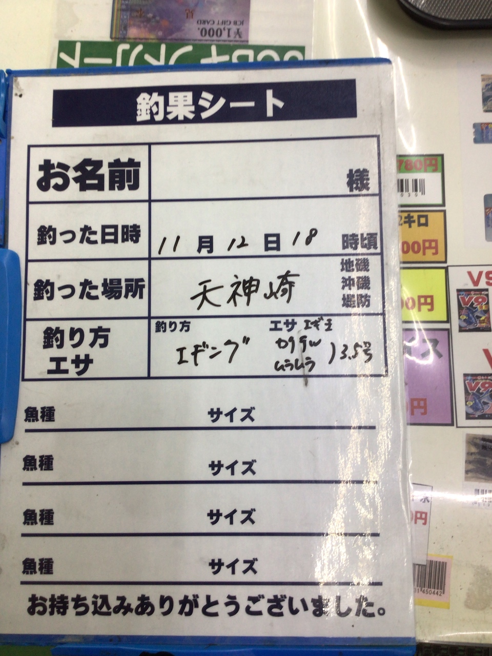 11/12 アオリイカの釣果 895g 天神崎、エギング釣りにて
