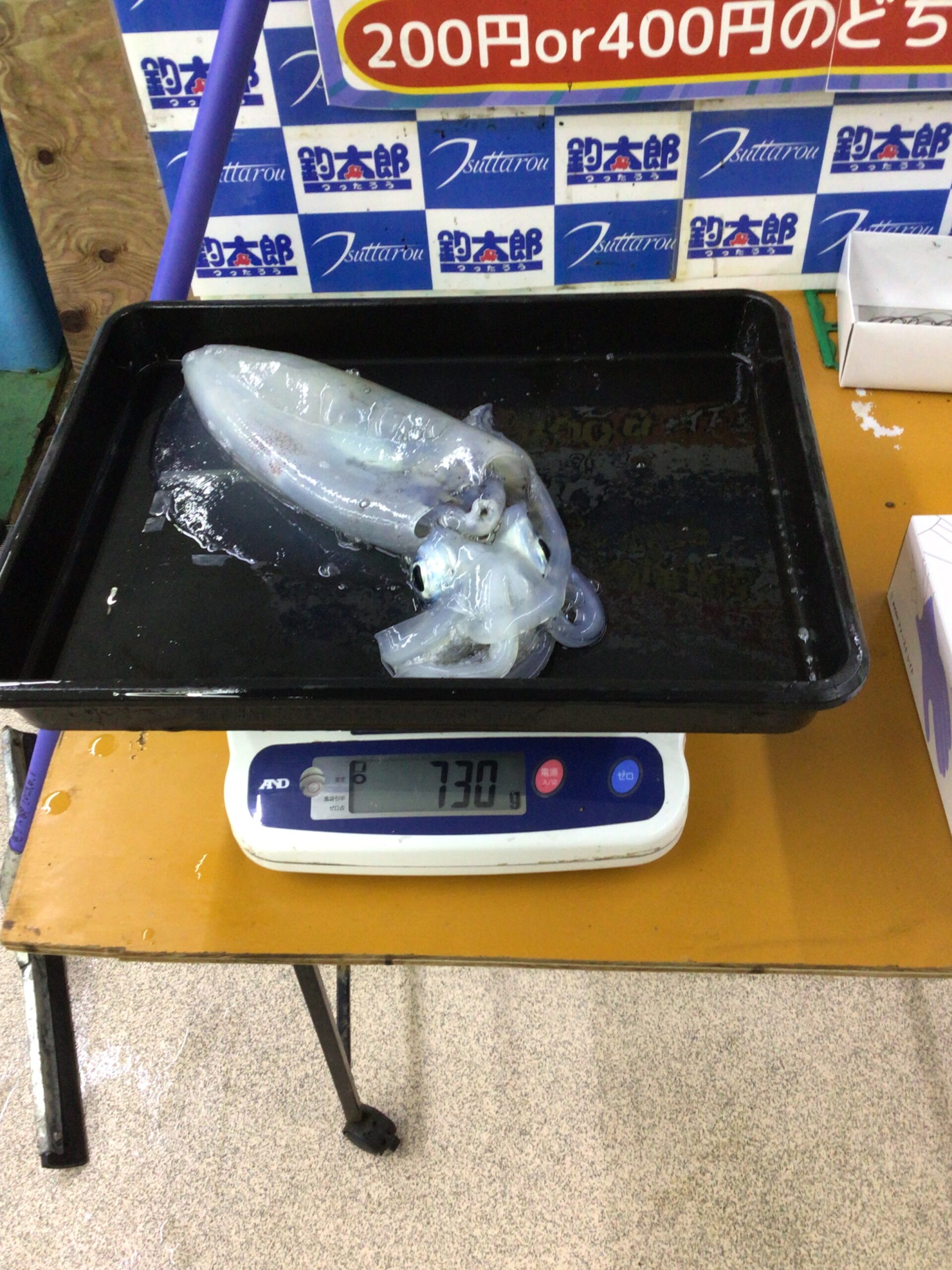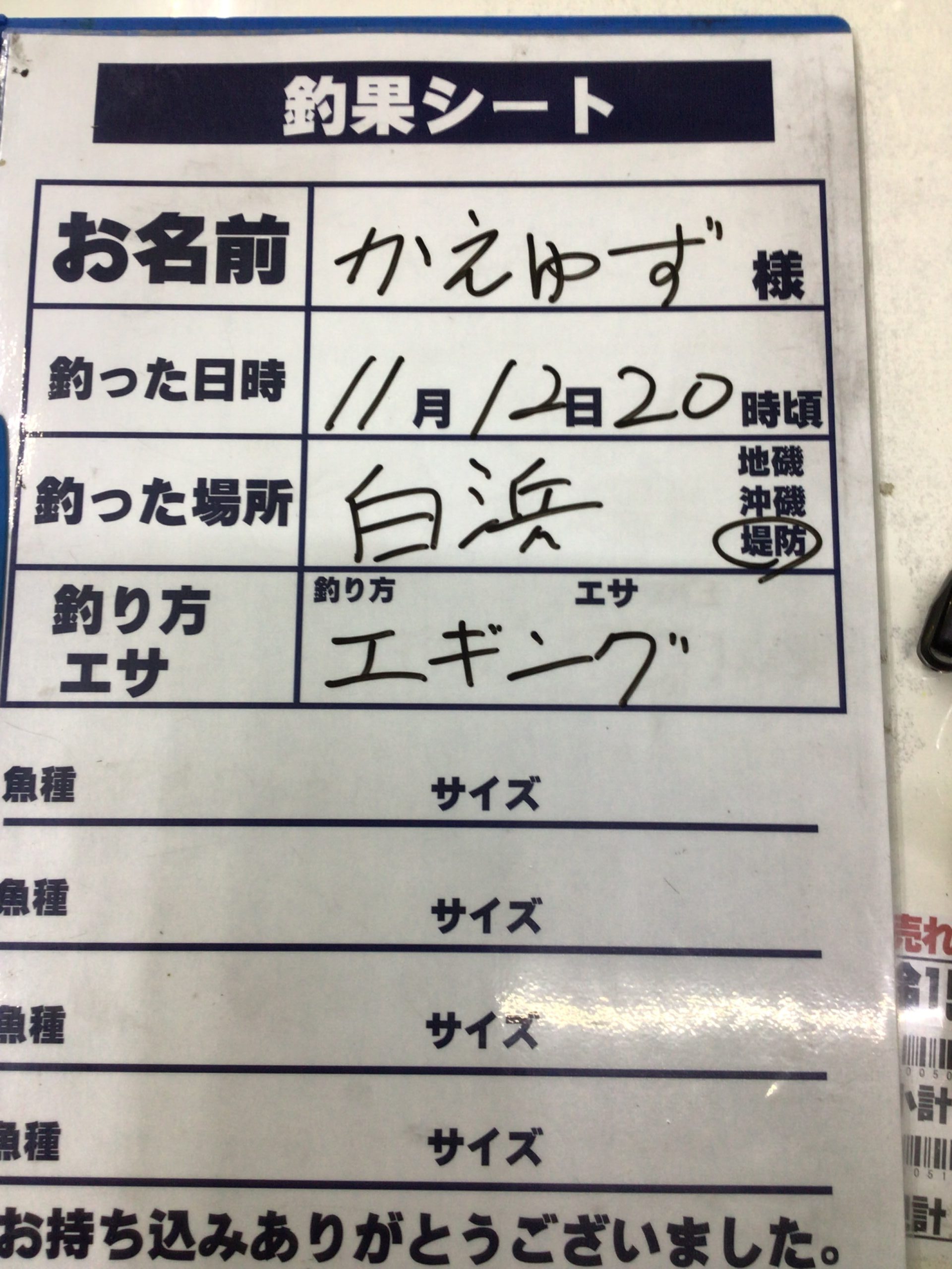 11/12 アオリイカの釣果 730g 白浜堤防、エギング釣り(軍艦グリーン)にて