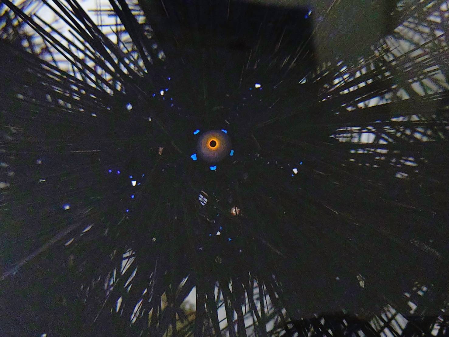 肛門の外側にある青い部分のもう少し外側の5か所ある白い点これが「眼点」と言う目の役割をする部分です。