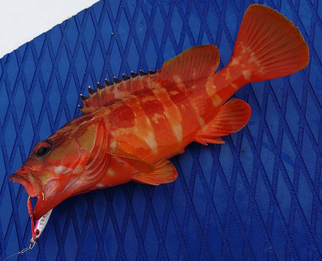 ルアーでロックフィッシュ(アカハタ編) 未分類 2025.11.16 今晩は。白浜店スタッフ関口です。 今回はアカハタについて少しお話を。 近年、ガシラを追いやり勢力分布を拡散しているアカハタですが、先日話したオオモンハタとは違い根に固執する傾向が強い魚です。 なのでテトラ帯や根の入り組んだ岩礁帯を中心に狙います。 広範囲を泳ぎ回る魚ではなく、基本的には半径5~10メートル以内で生活しています。 出来るだけ根をタイトに攻めた方が釣れる魚なのでホッグ系ワームを中心にリフト&フォール、ボトムパンプで根から離れない様攻めてみて下さい。 ジグだと根がかりが不安なのでシングルフック推奨です。