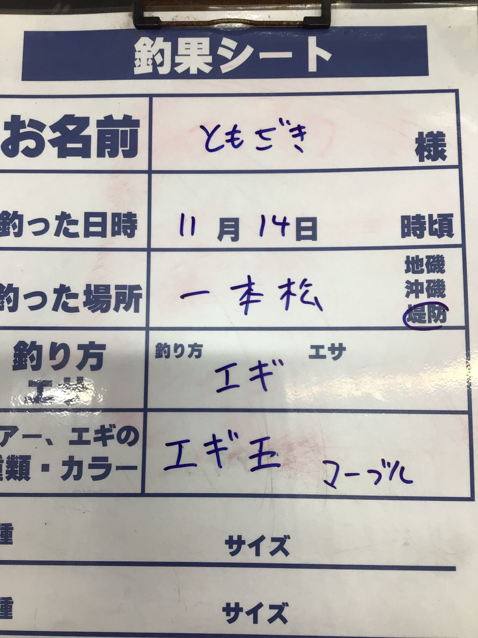 両店舗でアオリイカ釣果貼りだししています!サイズが大きいと貼りだすかも?!