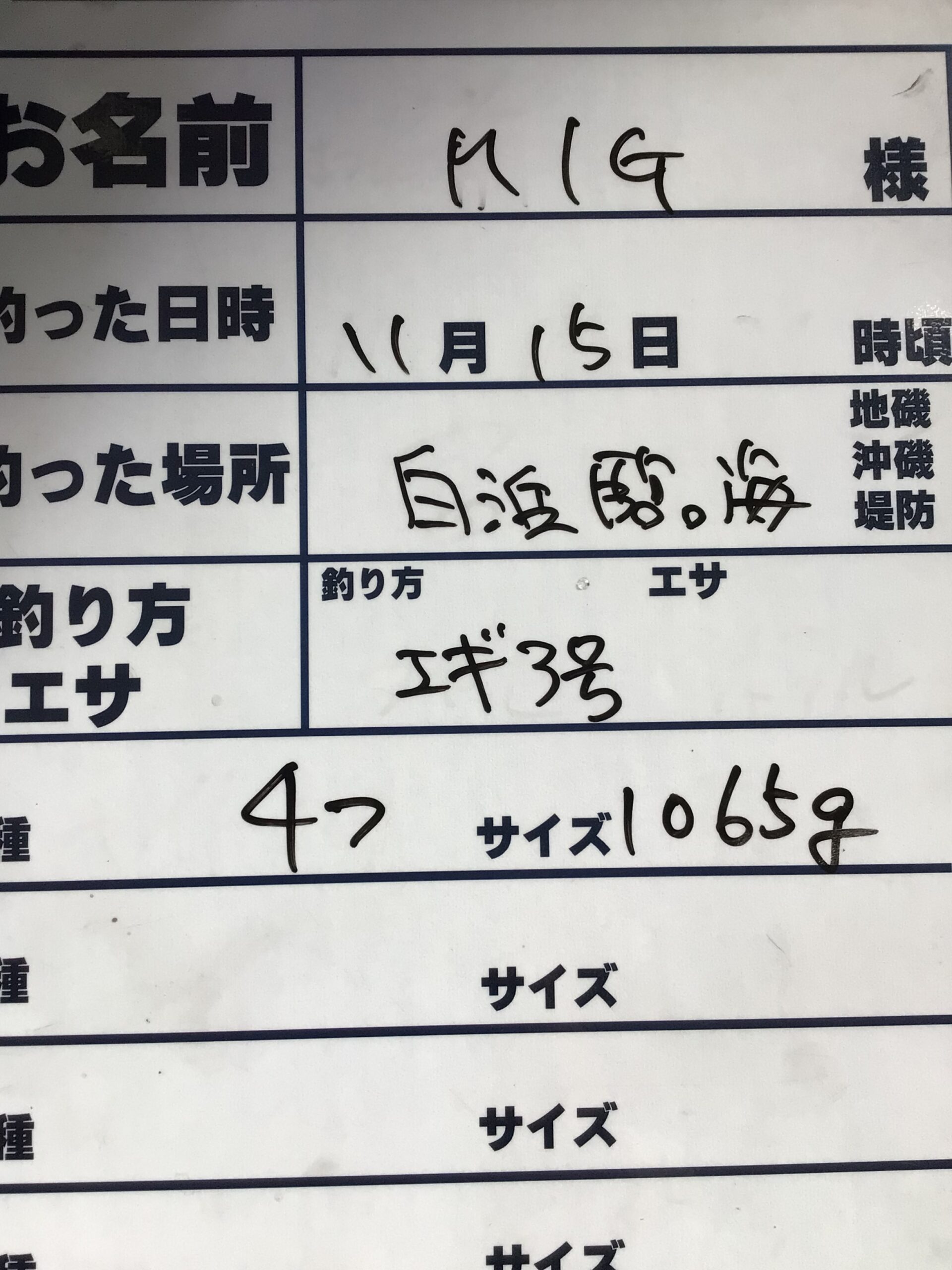 11/15 アオリイカの釣果 1065g(4杯) 白浜臨海、エギ3号