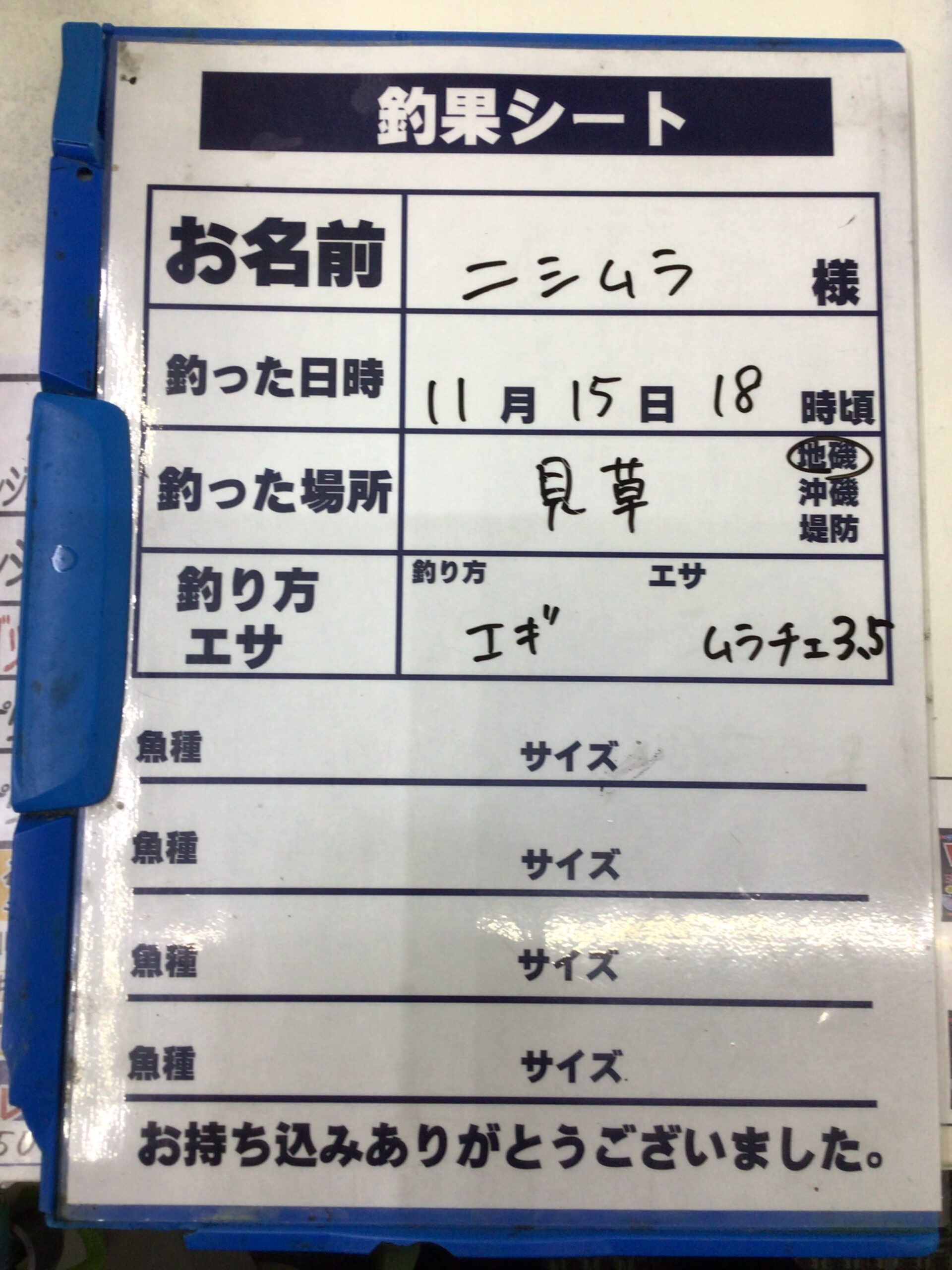 11/16 アオリイカの釣果 1270g 白浜見草地磯、エギ王3.5号ムラムラチェリー