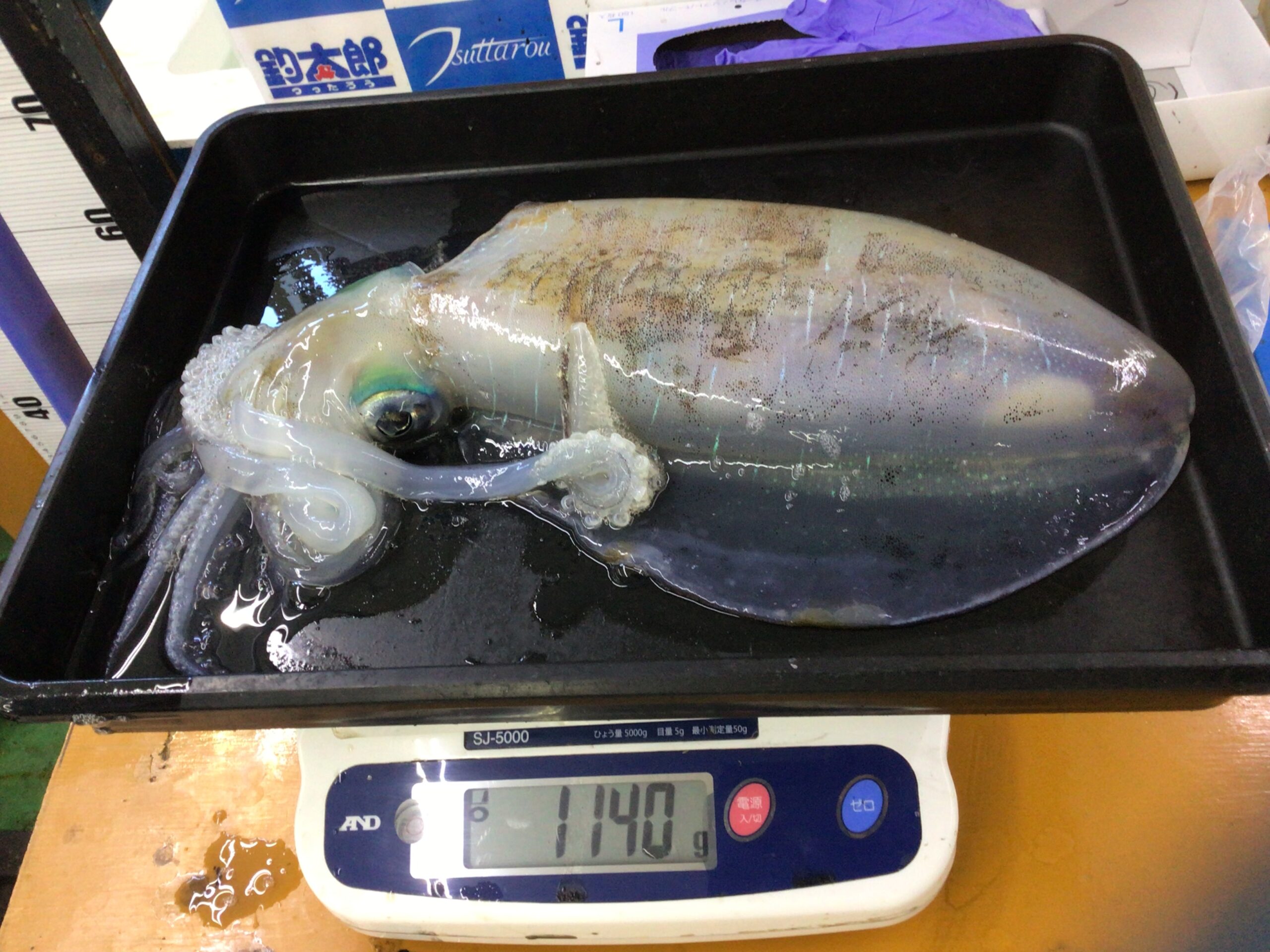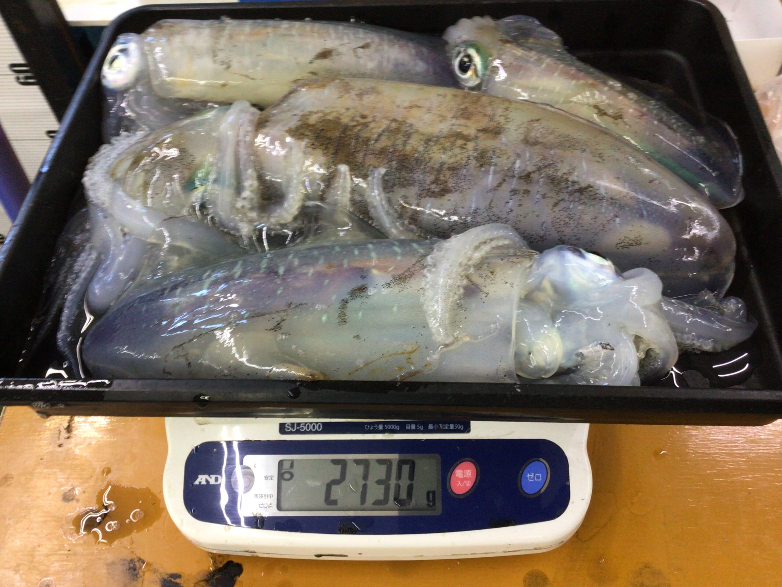 11/16 アオリイカの釣果 2730g(4杯) 白浜地磯、ヤエン釣りにて