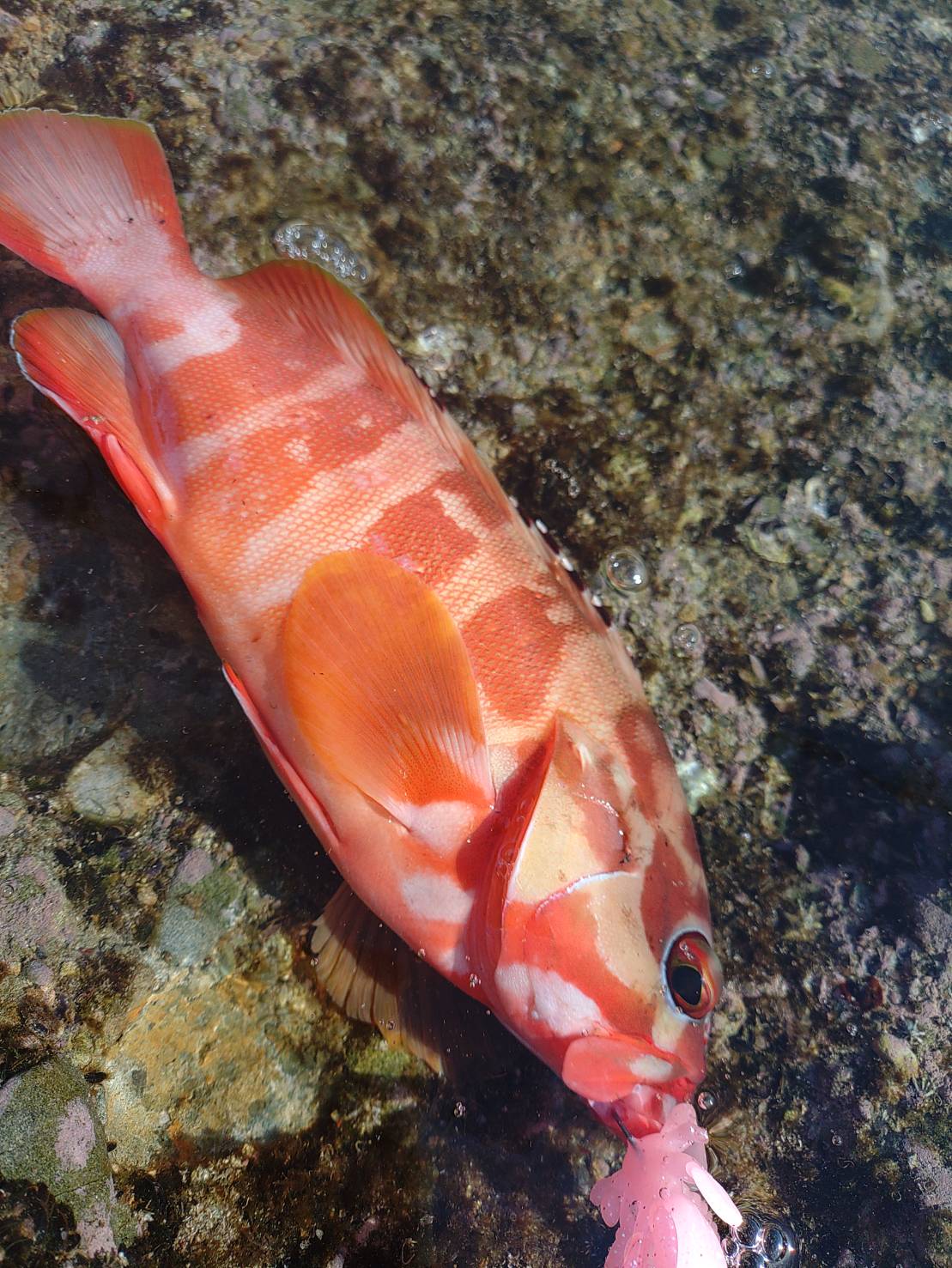 今回はアカハタ スタッフ釣行記 2025.11.19 今晩は。白浜店スタッフ関口です。 今回は夜勤明け、凪のロックフィッシュです。 ネチネチ叩いていくと足元で30弱のアカハタ 一誠 根魚玉21g+エコギア バグアンツ4インチ、北陸クリアピンクグロウホロ 続いて 一誠 デカハネエビ 19g 更に ガシラですね。 一誠 デカハネエビ10g ルアーサイズを落とすと魚のサイズも小さくなりました。