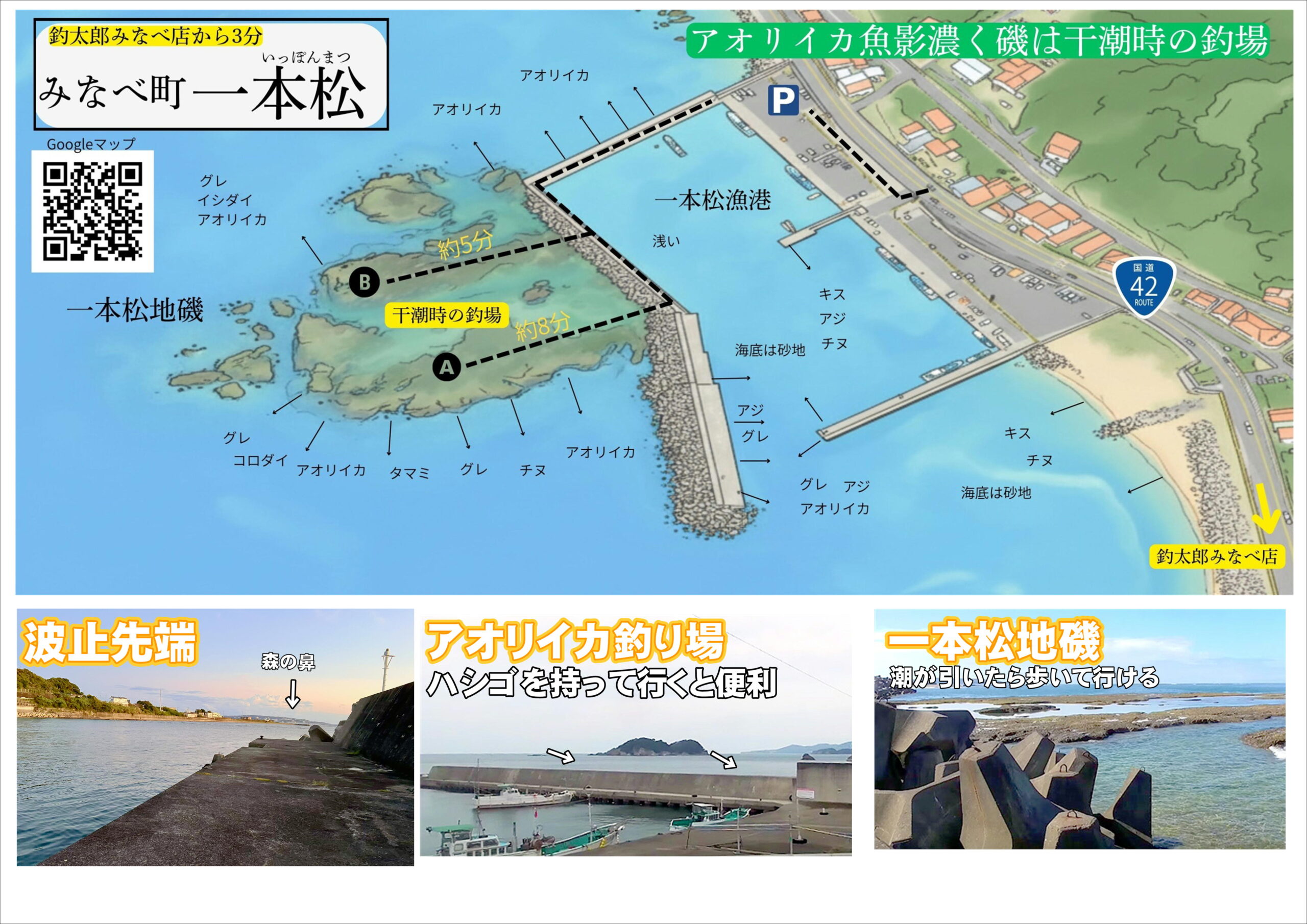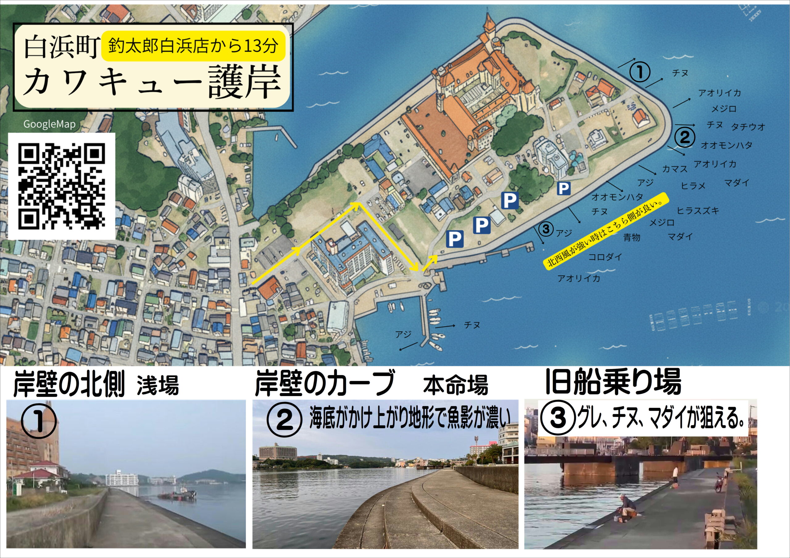 釣太郎では新しく見やすい釣り場地図を数々作っています。 お知らせ 2025.11.22 南紀のアオリイカ釣り場は田辺天神崎しか知らない、という県外釣り人も多いので、 北西風にも強い地図良好場所のマップ作りを進めています。