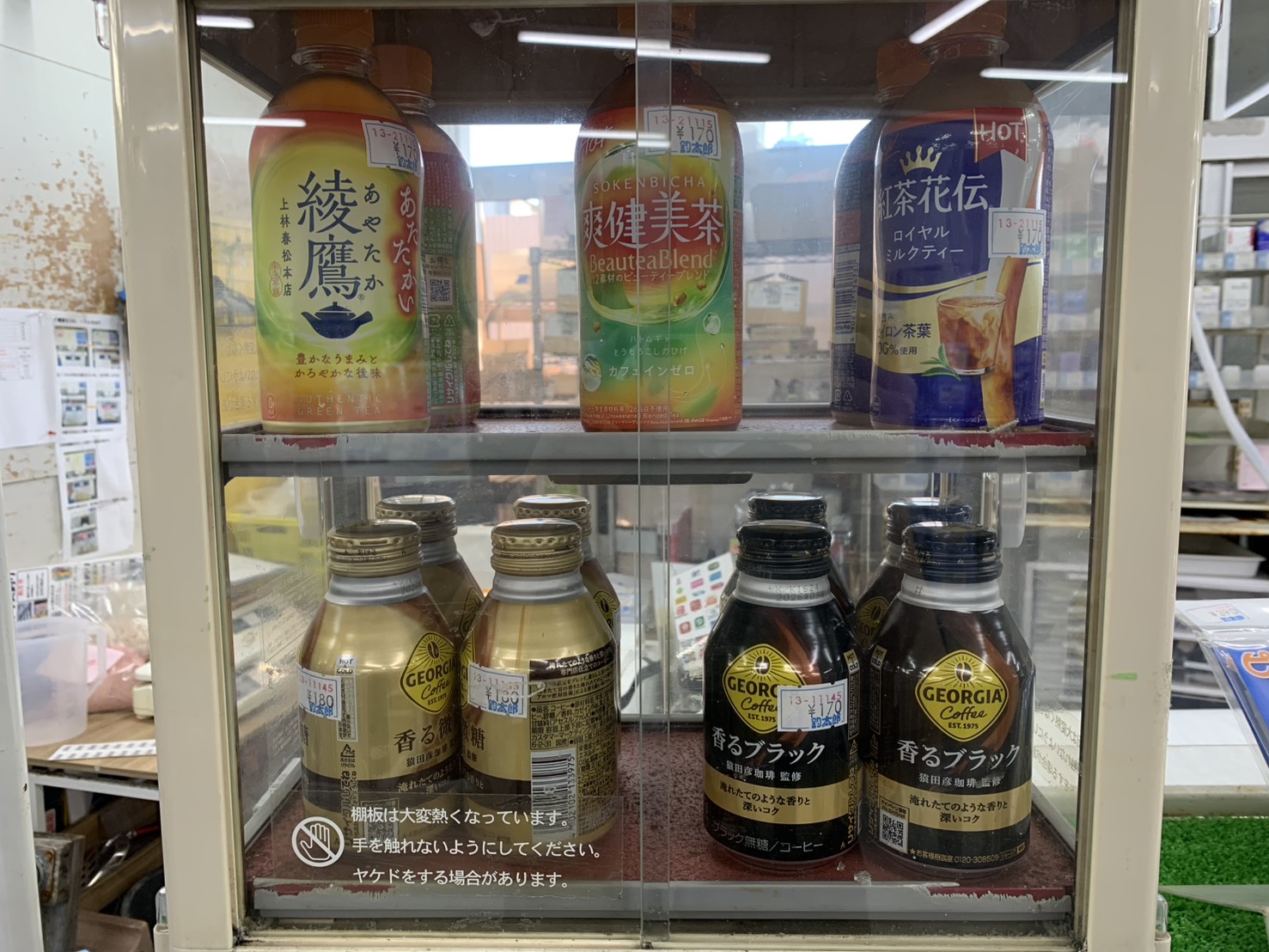 みなべ店ホットドリンク小量ですが用意しています。外の自販機にも多数あります。