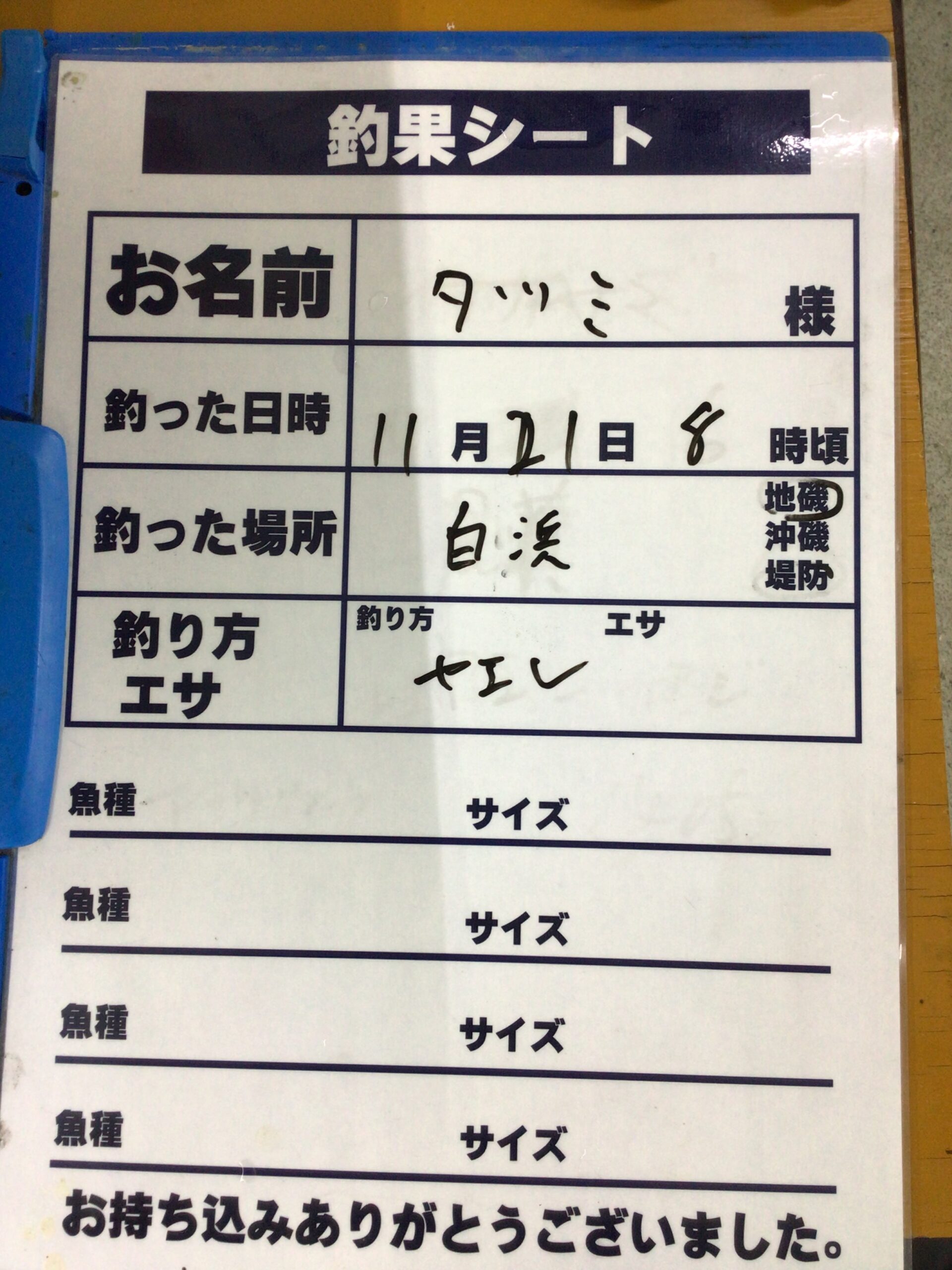 11月21日20時頃白浜の地磯でアオリイカの釣果