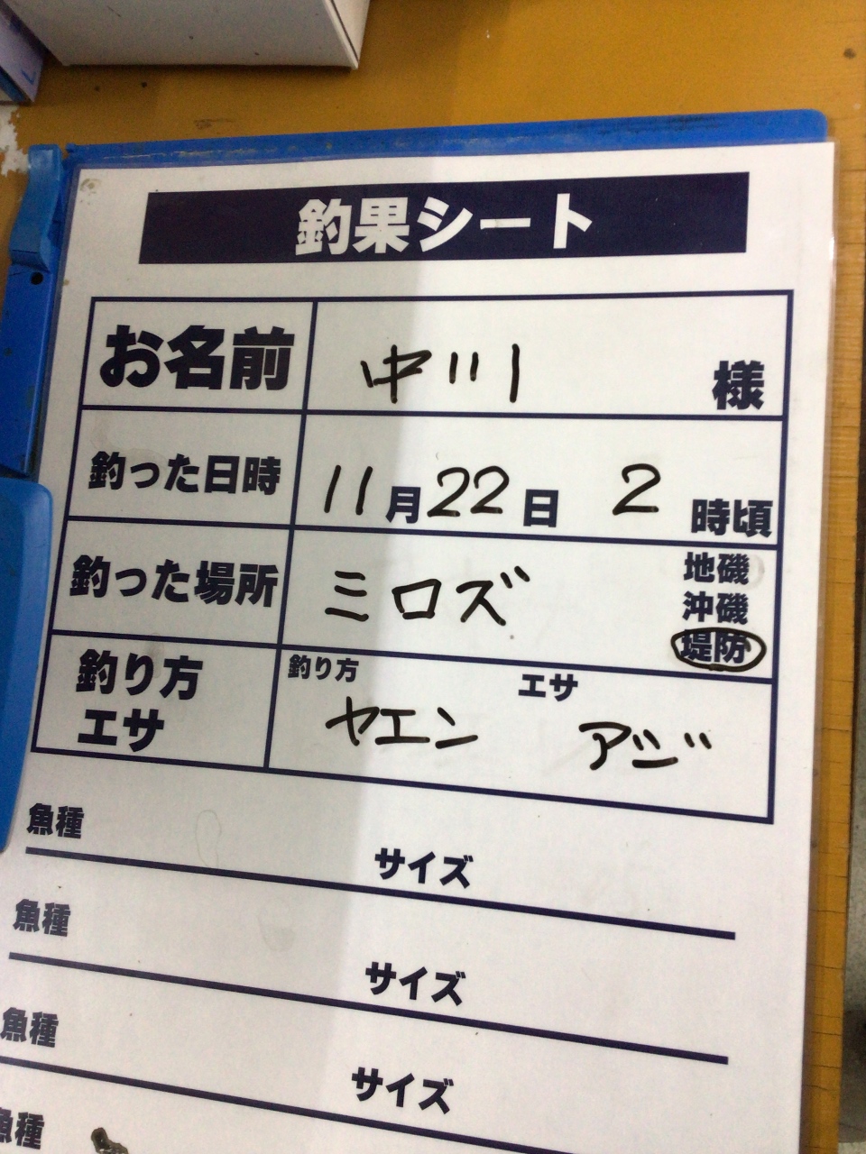 11/23 (日)見老津堤防でアオリイカ3杯1465g ヤエンにて