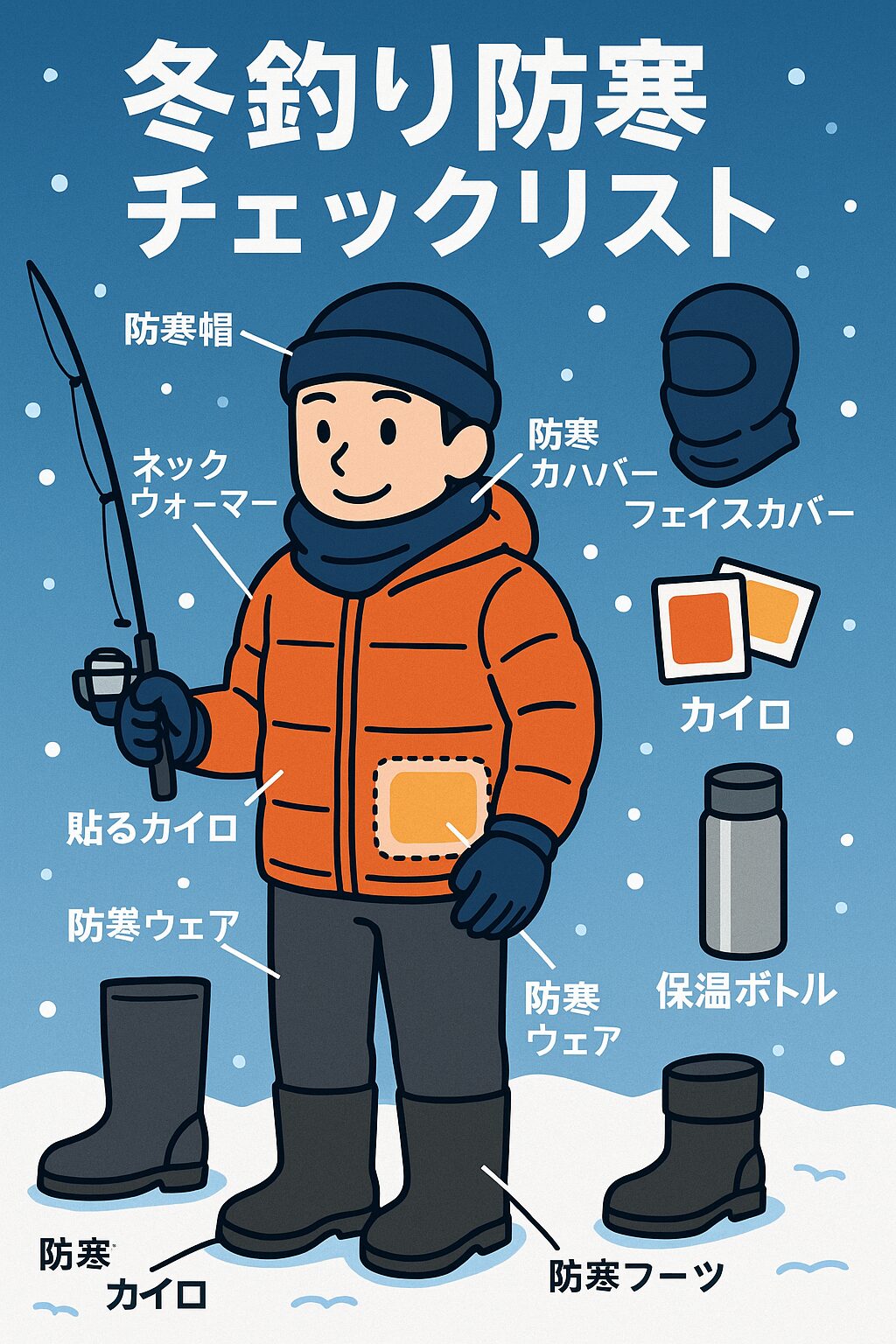 冬の釣りは寒さとの戦い。堤防・磯・海上釣堀で釣果を上げるには、防寒対策が最重要です。本記事では釣具店視点で、ウェア選び、カイロ活用、手・足・顔の防寒、高機能インナー構成、風対策、釣りながら温まる方法などを初心者向けに詳しく解説します。