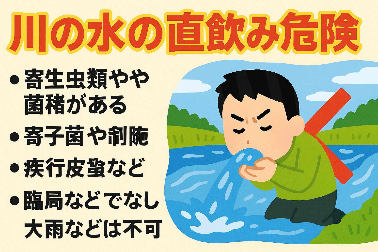 🚫 川の水は見た目が綺麗でも 絶対にそのまま飲んではいけません