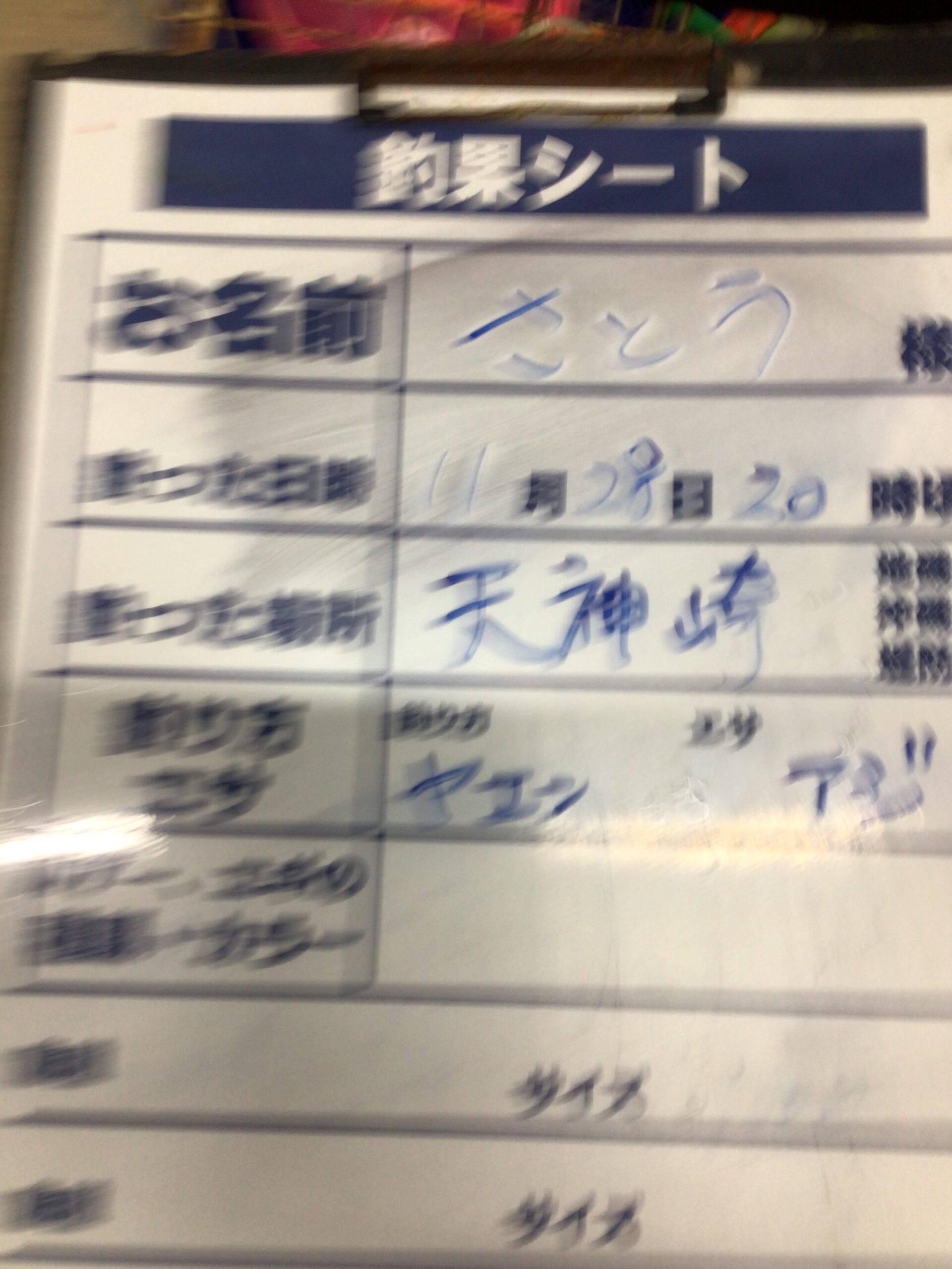 11/28 アオリイカの釣果 1000g400 天神崎釣り場、ヤエン釣りにて