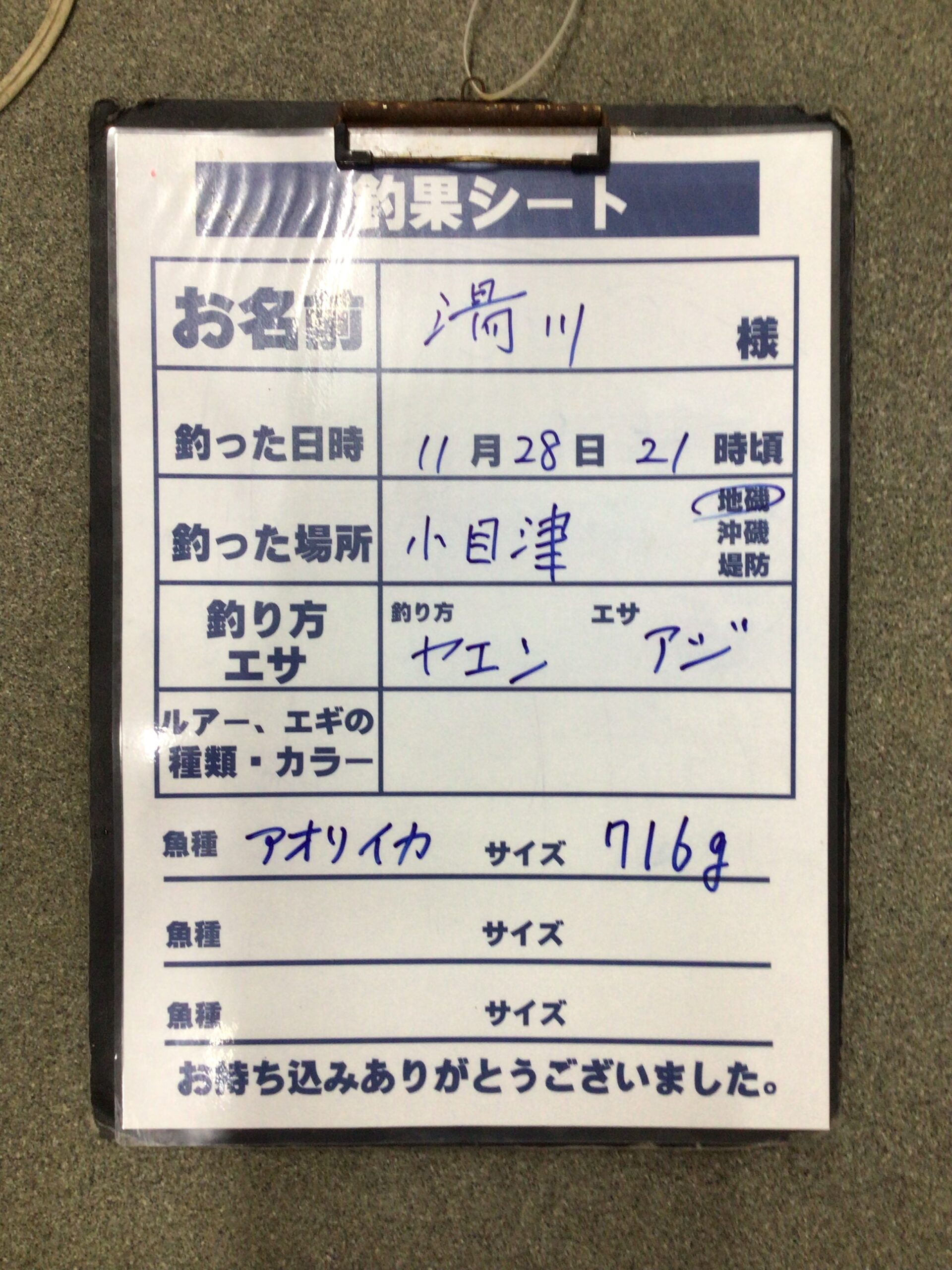 11月28日 湯川様 アオリイカの持込釣果。