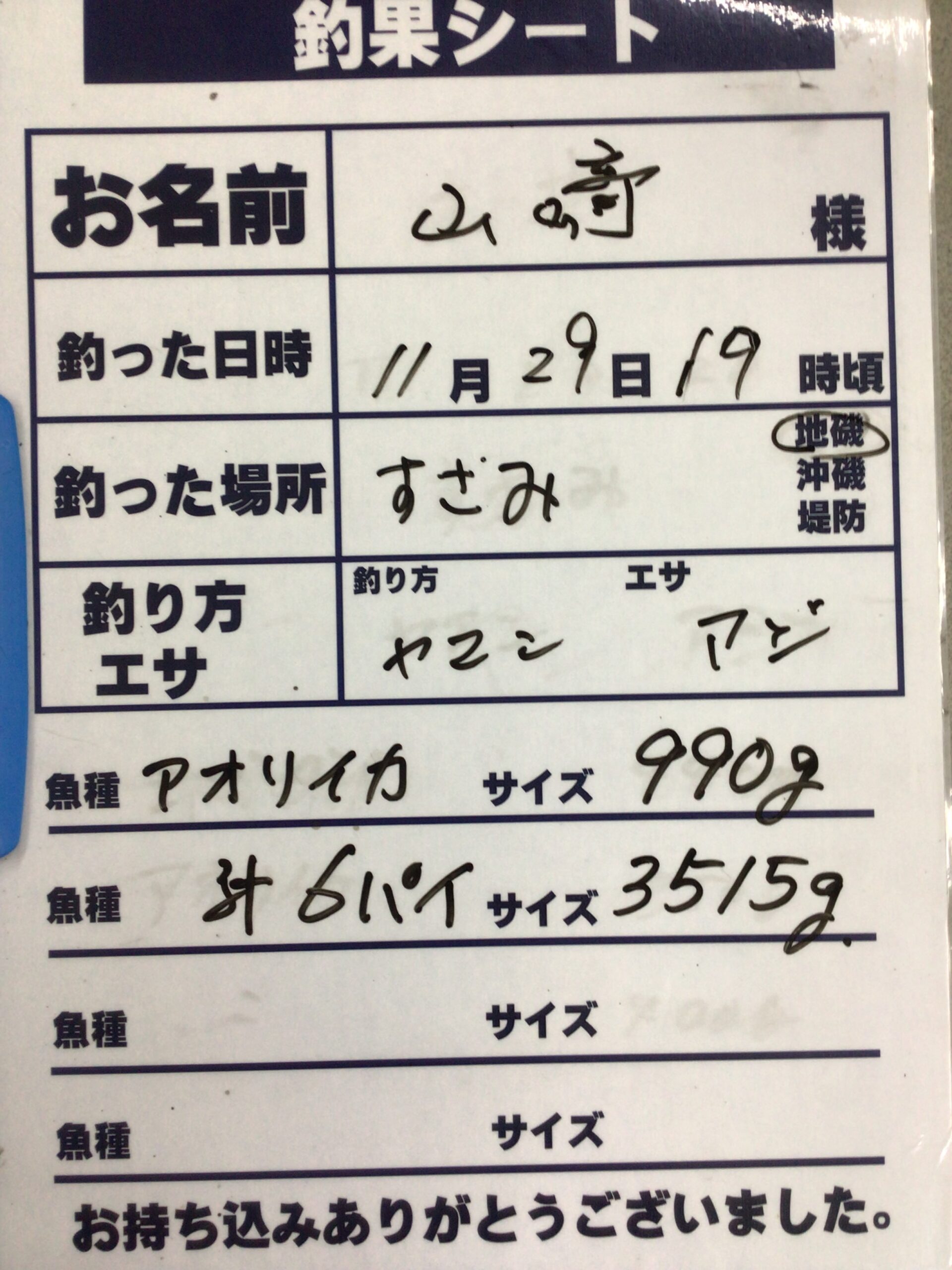 イカ釣果