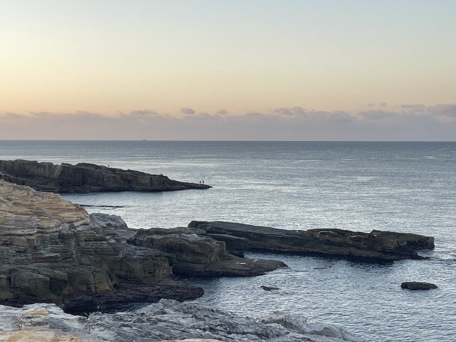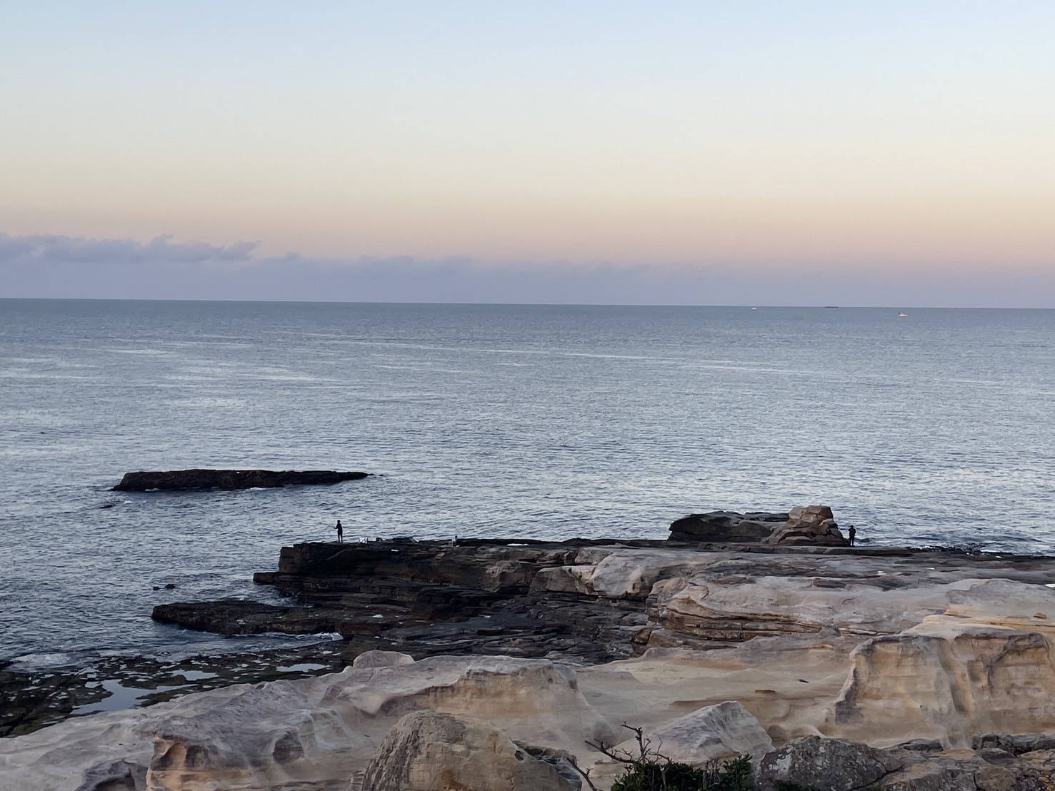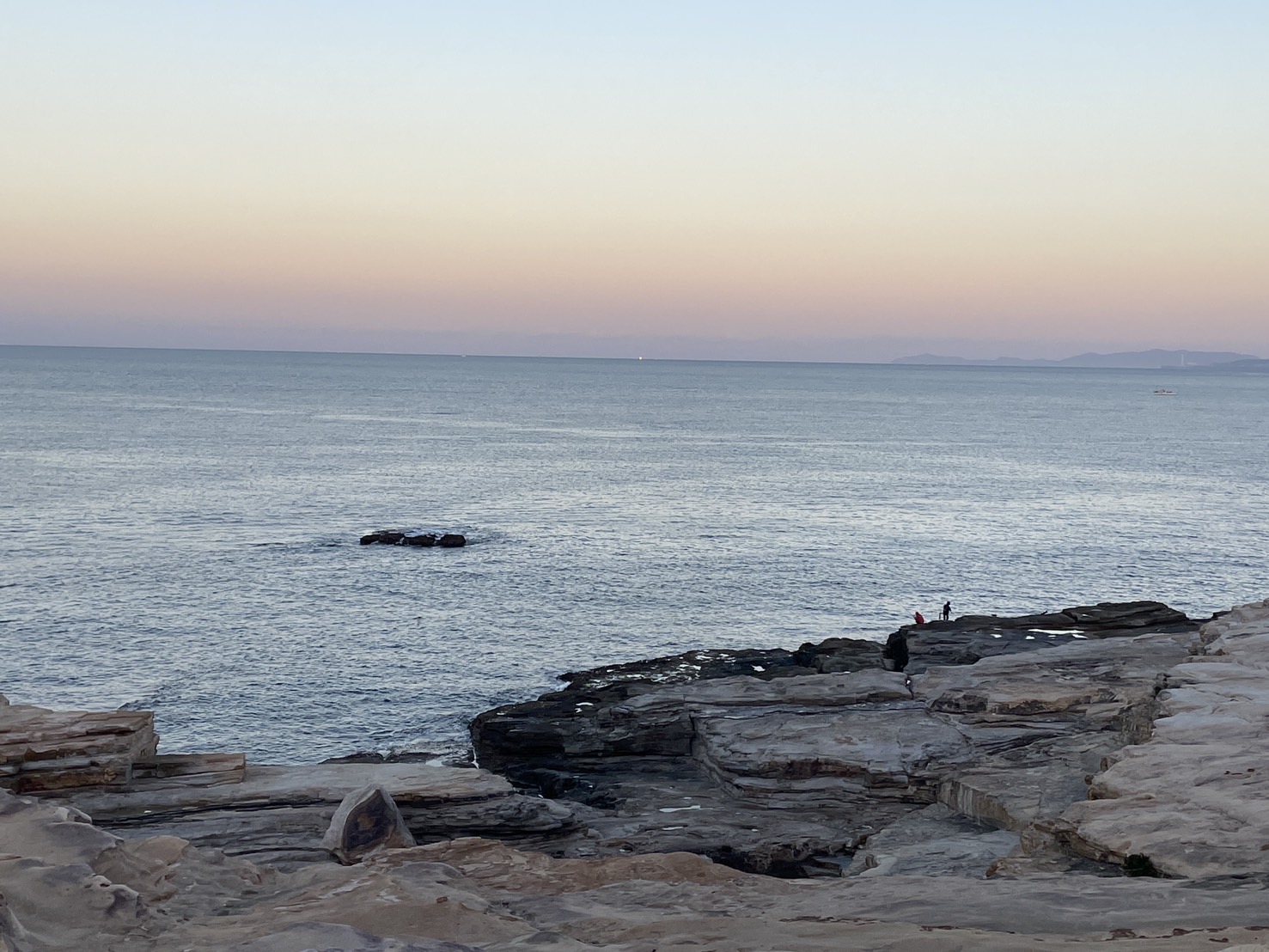 今朝は風も無くベタ凪です。 釣り人も多いようです。白浜千畳敷