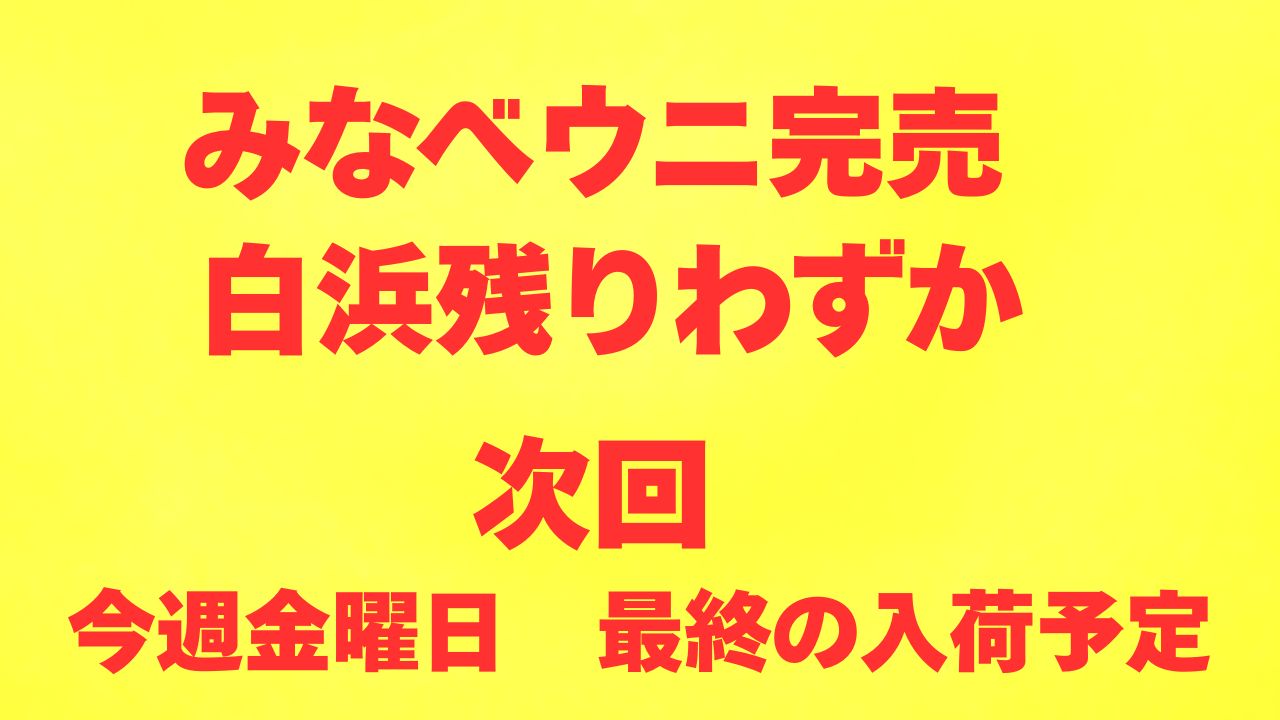 みなべ店ウニ完売です、次は金曜日の入荷予定です。今年最後の予定です。