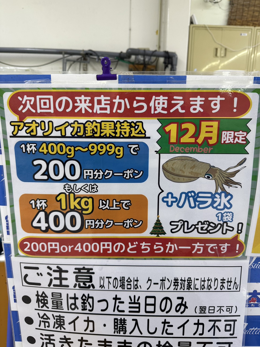アオリイカの釣果イベント12月限定で行ってます!!!