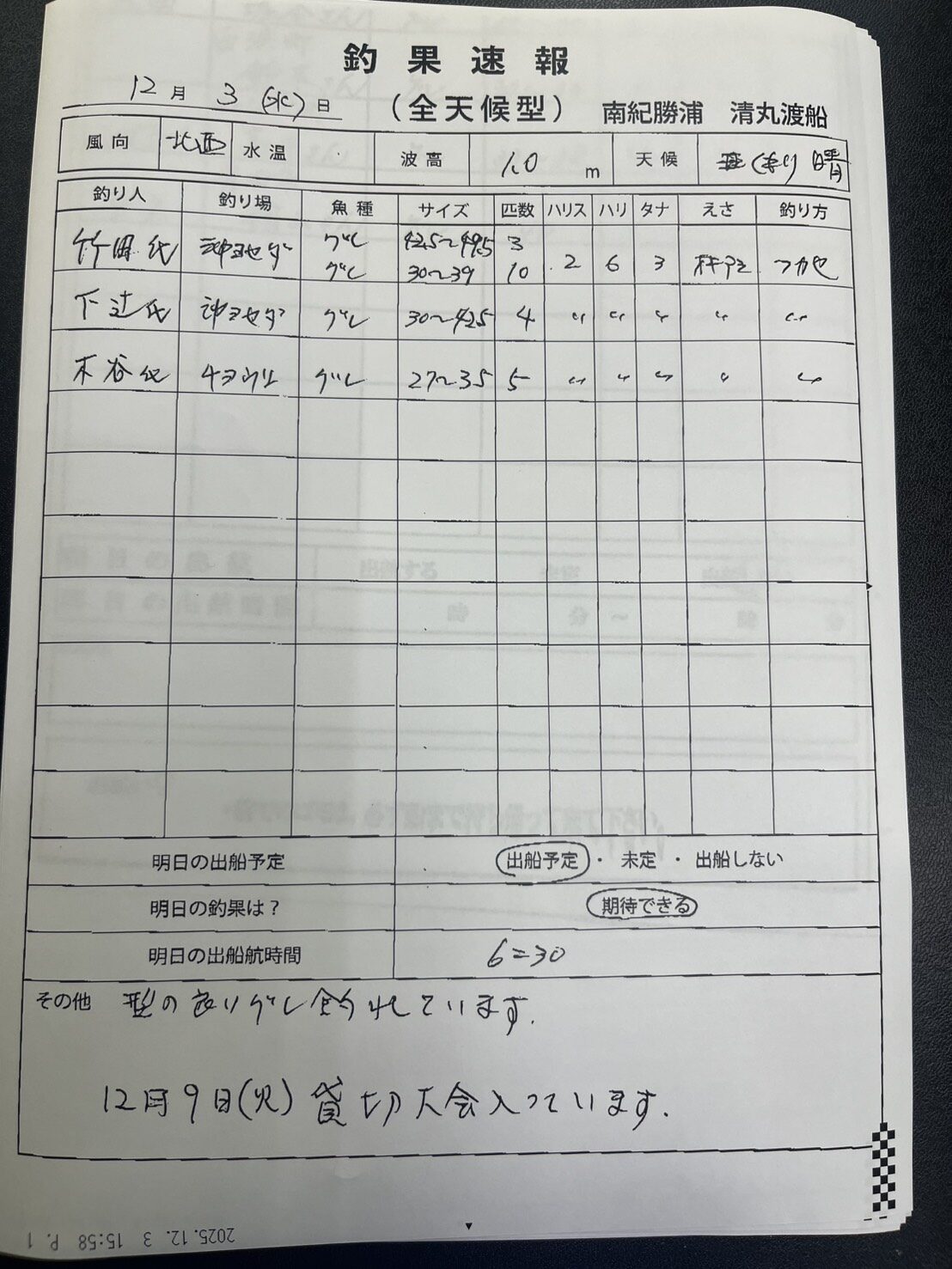 本日那智勝浦町・清丸渡船さんで49.5cmのグレが上がりました!型のいいグレも上がり出しています!