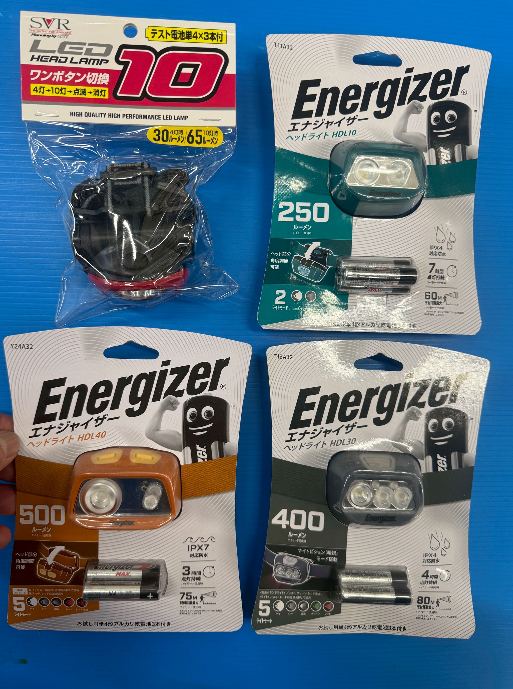 今回は、釣具店でも人気の SVR LED10 と Energizer(HDL10・HDL40・HDL30) の4種類を、釣り人目線で比較しながら紹介します。