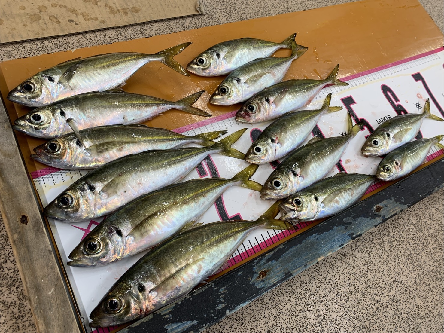 12/12田辺堤防で25~30cm尺アジの釣果持込。カゴ釣りで!