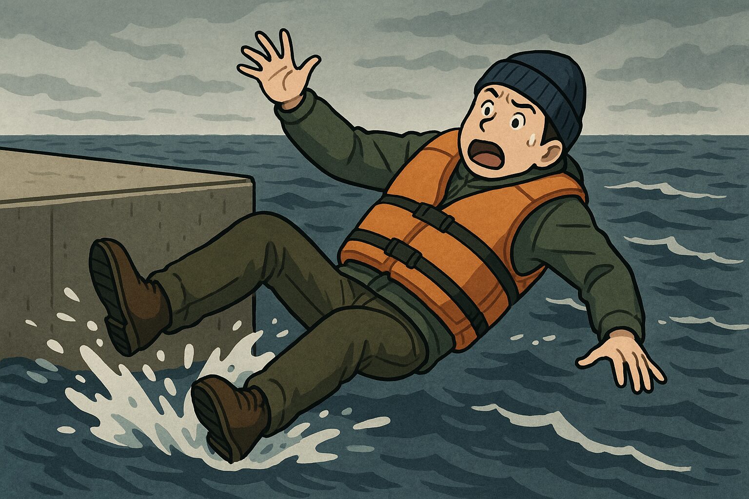・長靴・防寒ブーツで釣り場を歩く際、海を背にして移動しない。