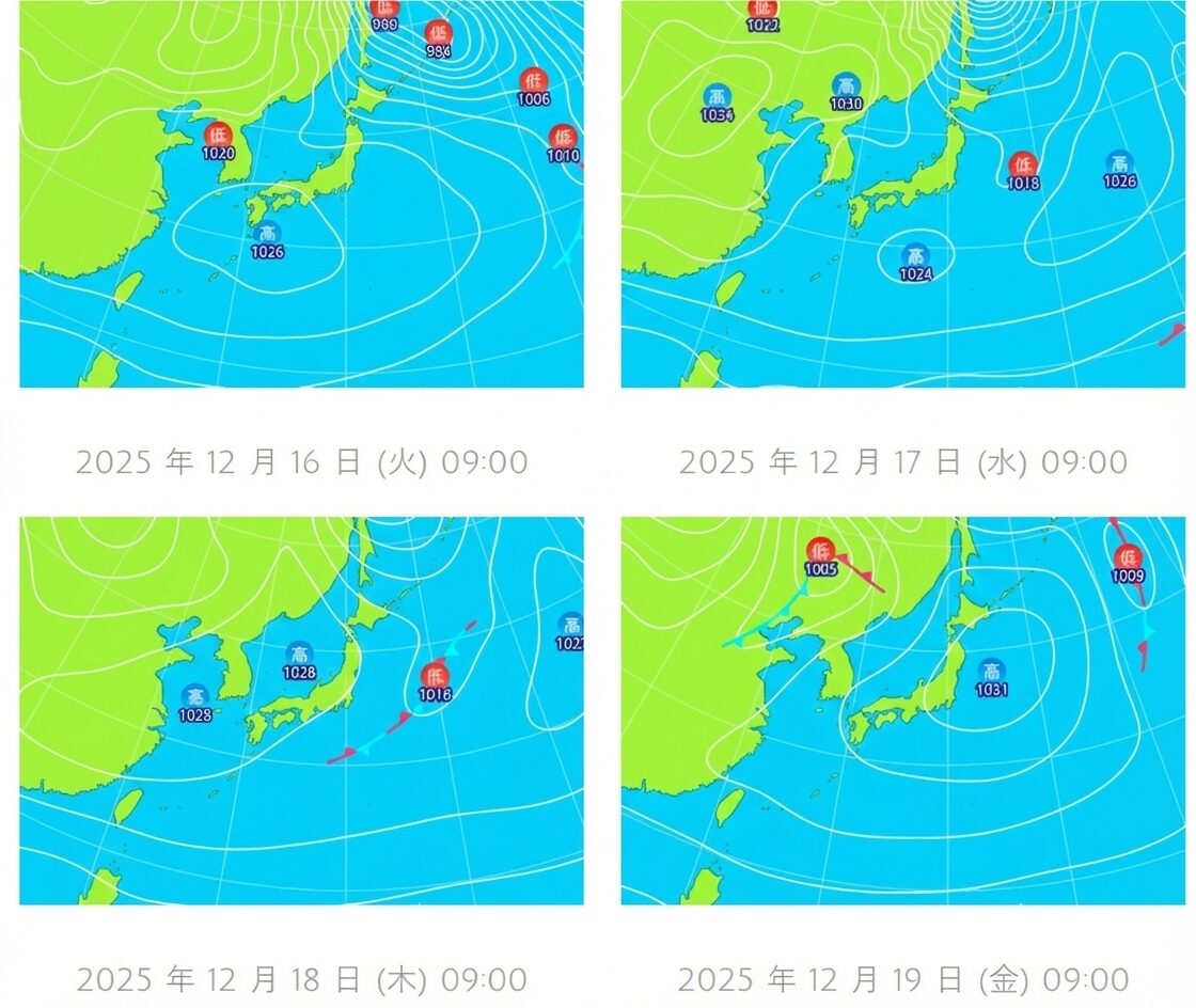 このパターンで行くと、高気圧の後面からの気圧の谷で