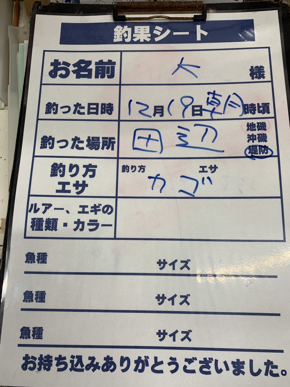 12/19田辺堤防での尺アジ釣果。カゴ釣りです! 波止釣り・サーフ釣り釣果 2025.12.19 尺アジ釣るなら早朝が圧倒的にオススメ! 夕方5時くらいからも釣れてるとか。 尺アジの刺身はサイコーですよ!