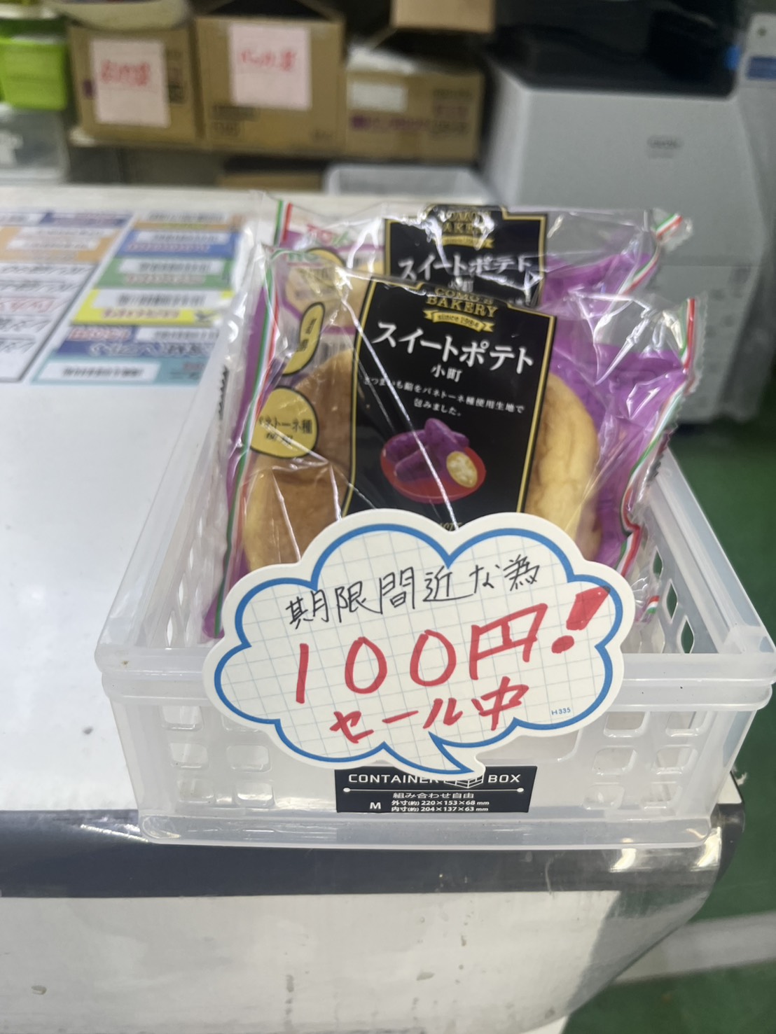 期限間近な為、白浜店数量限定スイ-トポテトパン100円セ-ル中!