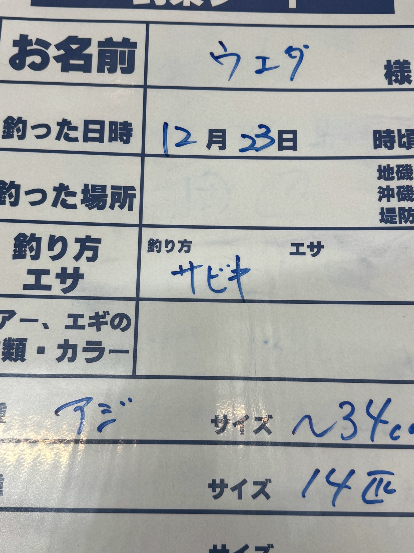 尺アジ7匹のお持ち込み釣果。合計14匹。12月23日火曜日。サビキ釣りで