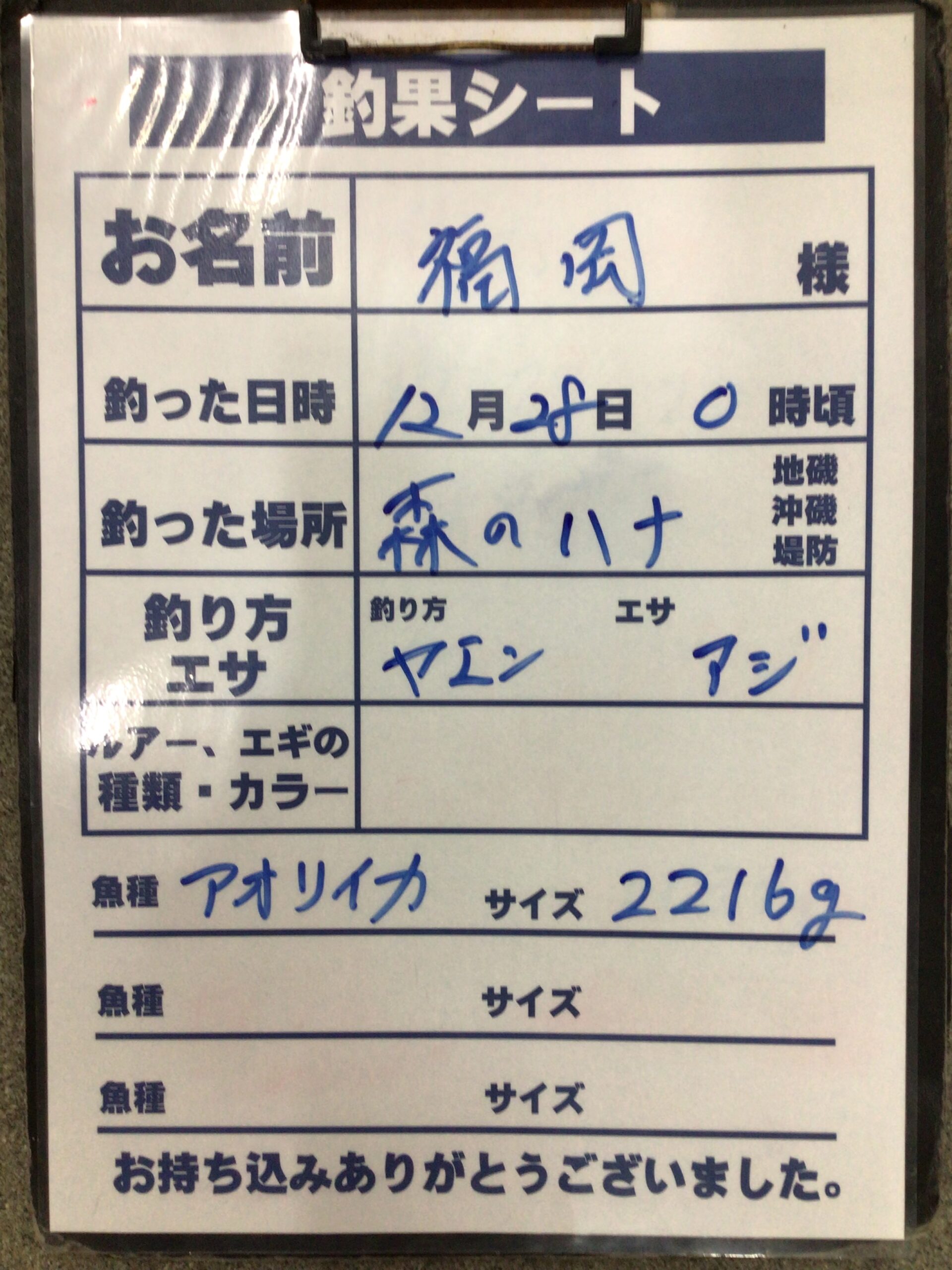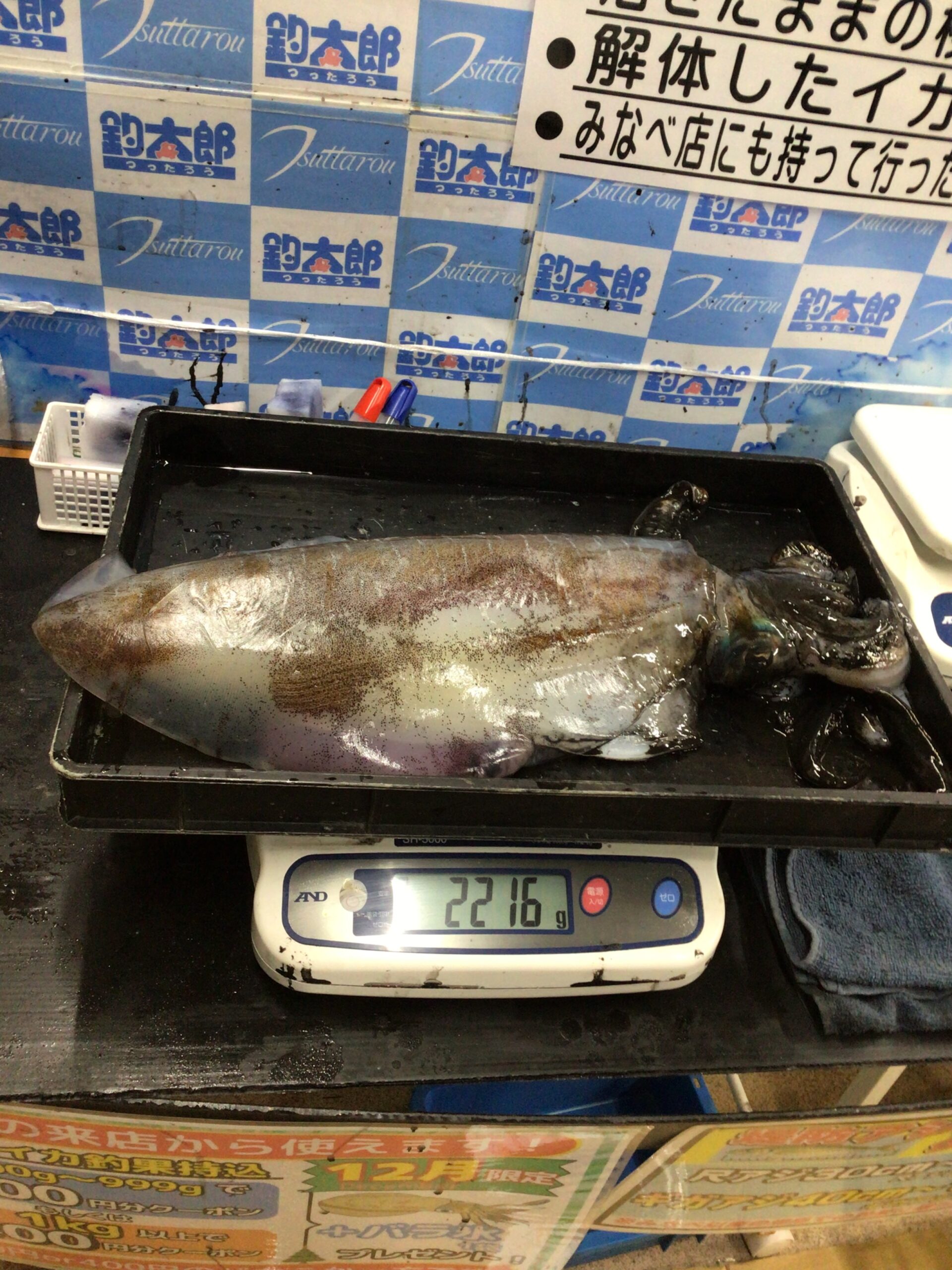 12月28日 福岡様 アオリイカの釣果。2216g みなべ町堺 森の鼻です。