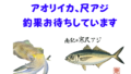 活アジ: アオリイカのヤエン・ウキ釣り、ヒラメ狙いの飲ませ釣りに必須。元気いっぱいの活アジを在庫しています。