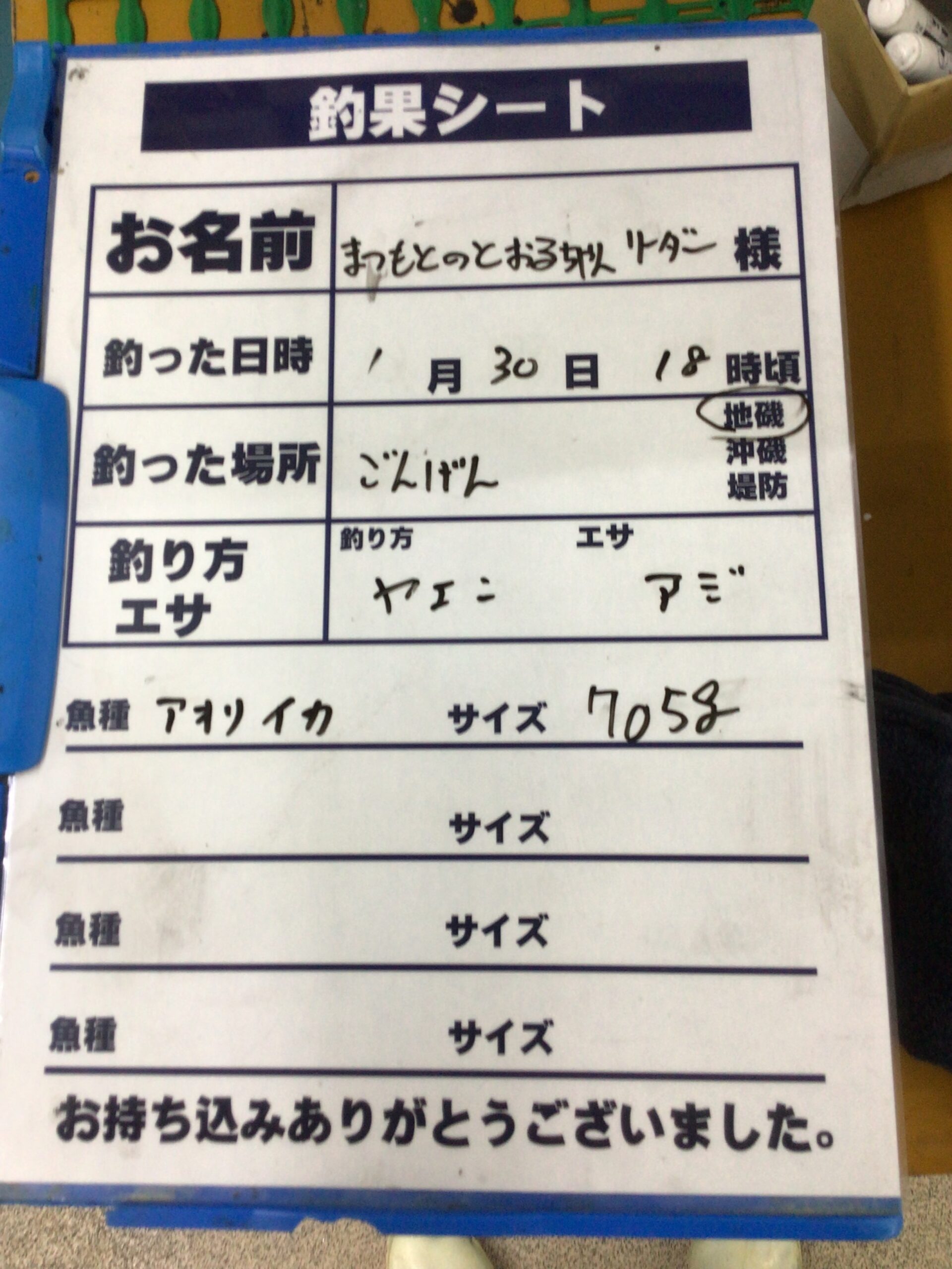 12/30 権現地磯にてアオリイカ1295g(最大705g)釣果 ヤエン