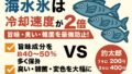 海水氷は釣り人の鮮度革命!冷却速度2倍、旨味保持率40〜50%向上、雑菌・臭い・変色を徹底防止。