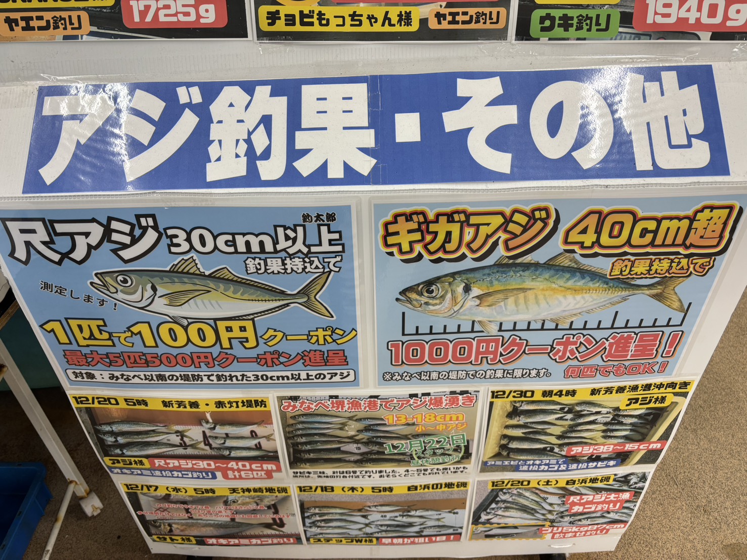 尺アジ、ギガアジ釣果持込でクーポン配布中。