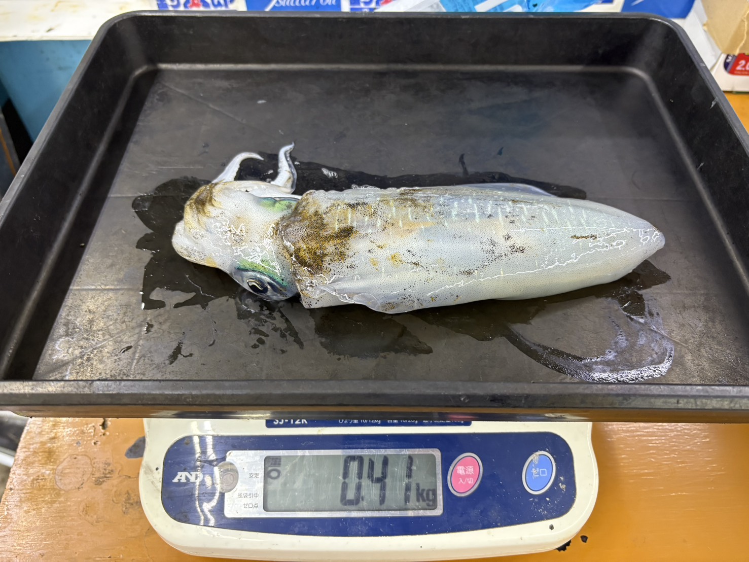 1/6 アオリイカの釣果 400g 椿地磯、エギングにてエギはパタパタ