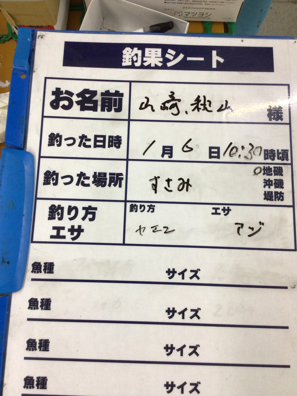1/6 (火)笠甫でアオリイカ1.85キロ ヤエンにて